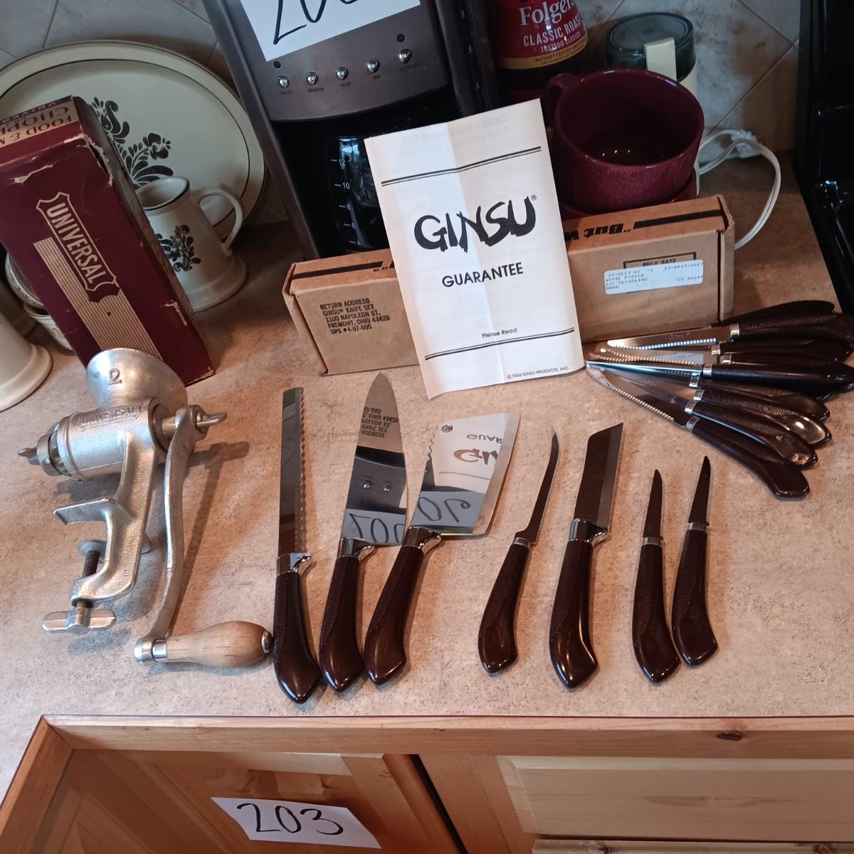 NEW GINSU CUTLERY AND #2 UNIVERSAL MEAT GRINDER
