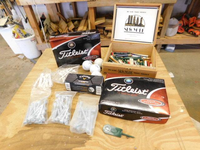 New Golf Balls, Tees, and Pencils from Various Golf Courses