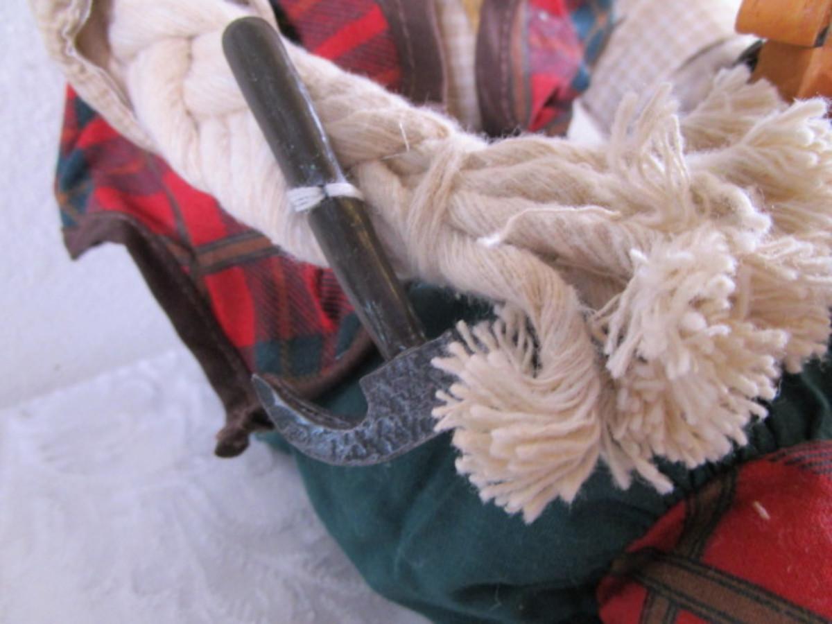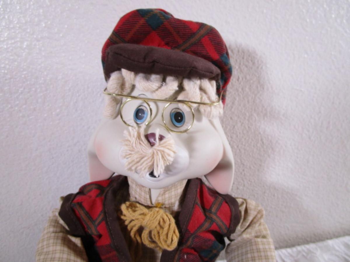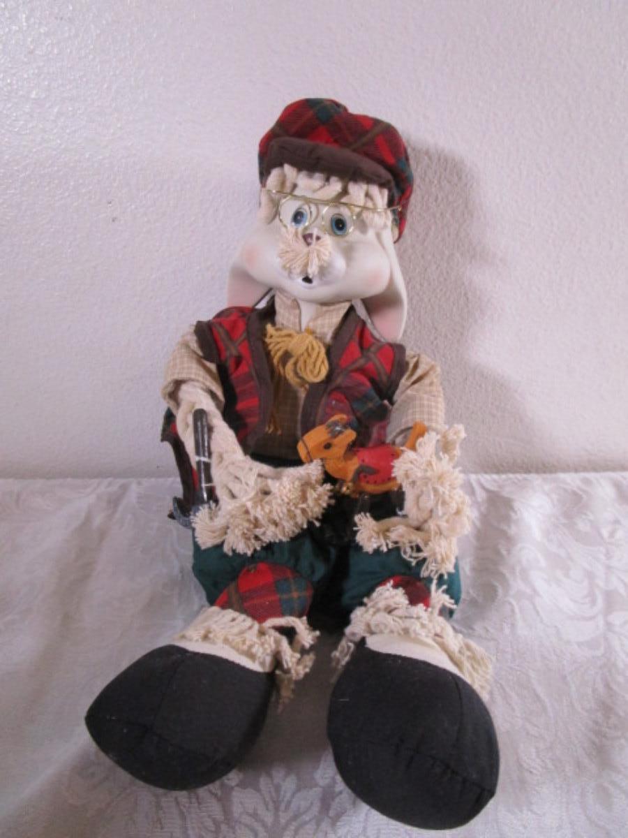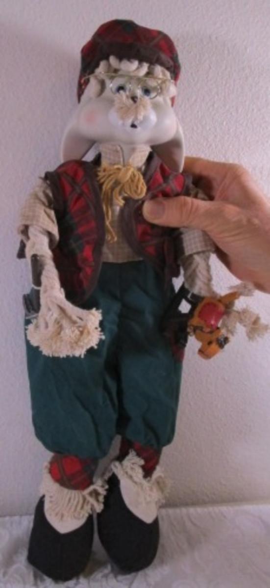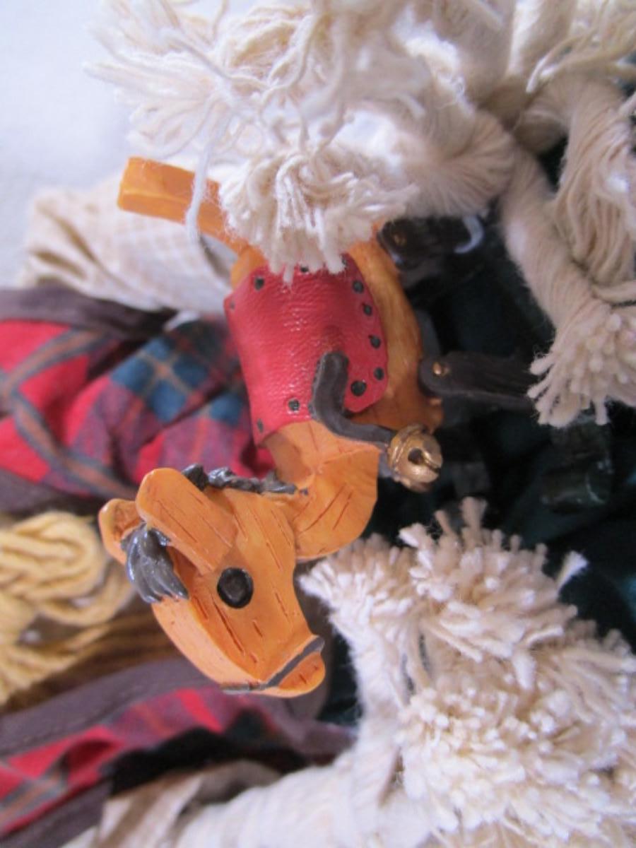 New in box, Christmas Around the World Collection, porcelain head & cloth body, 16" tall, rocking horse in one hand & hammer in the other