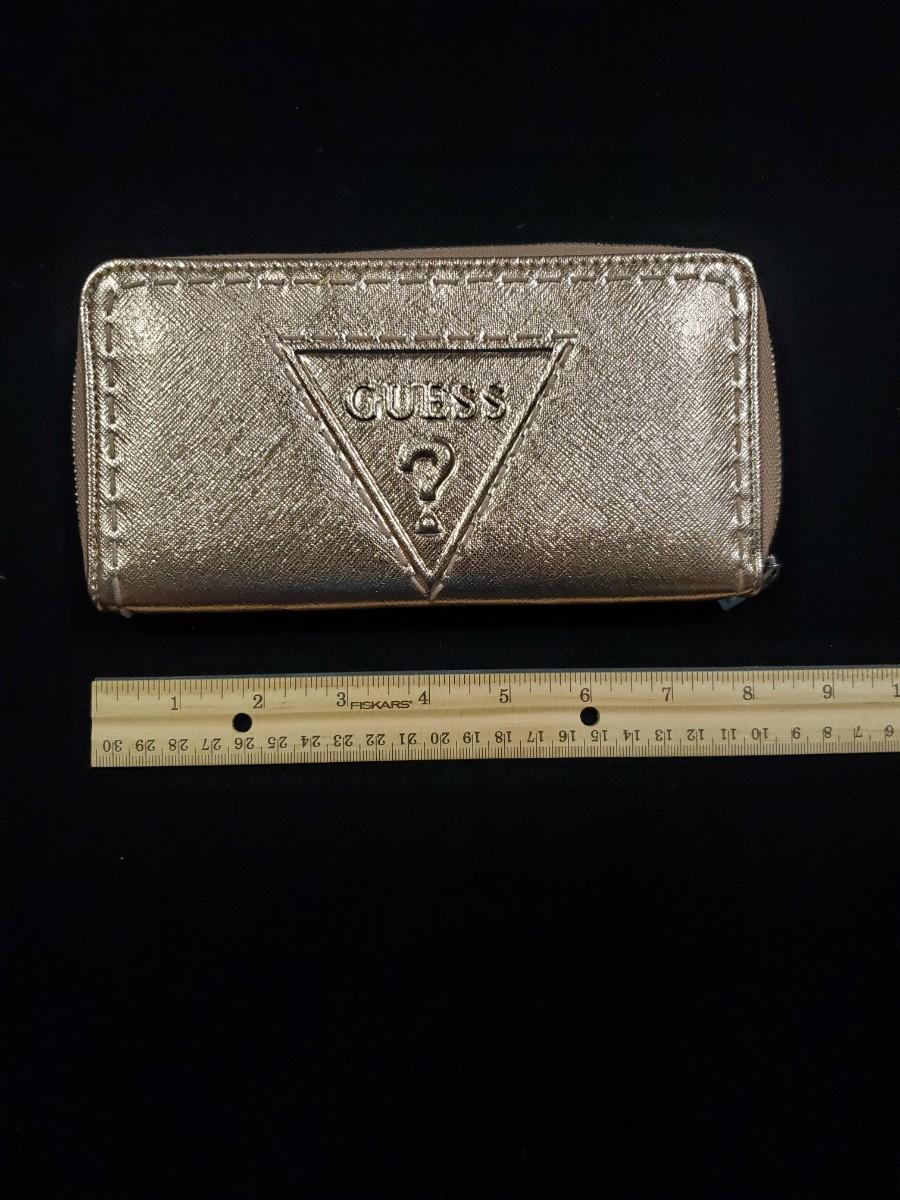 New Guess Zippered Wallet Large Metallic Rose Gold
