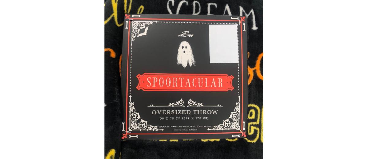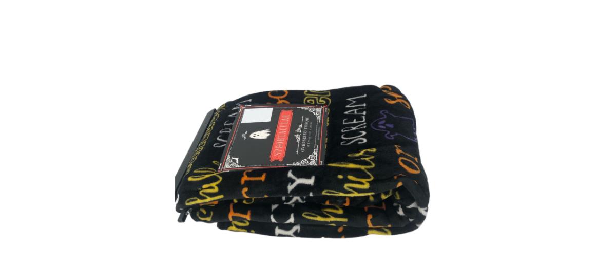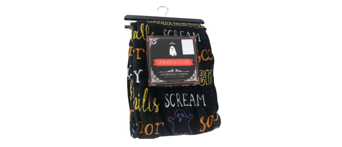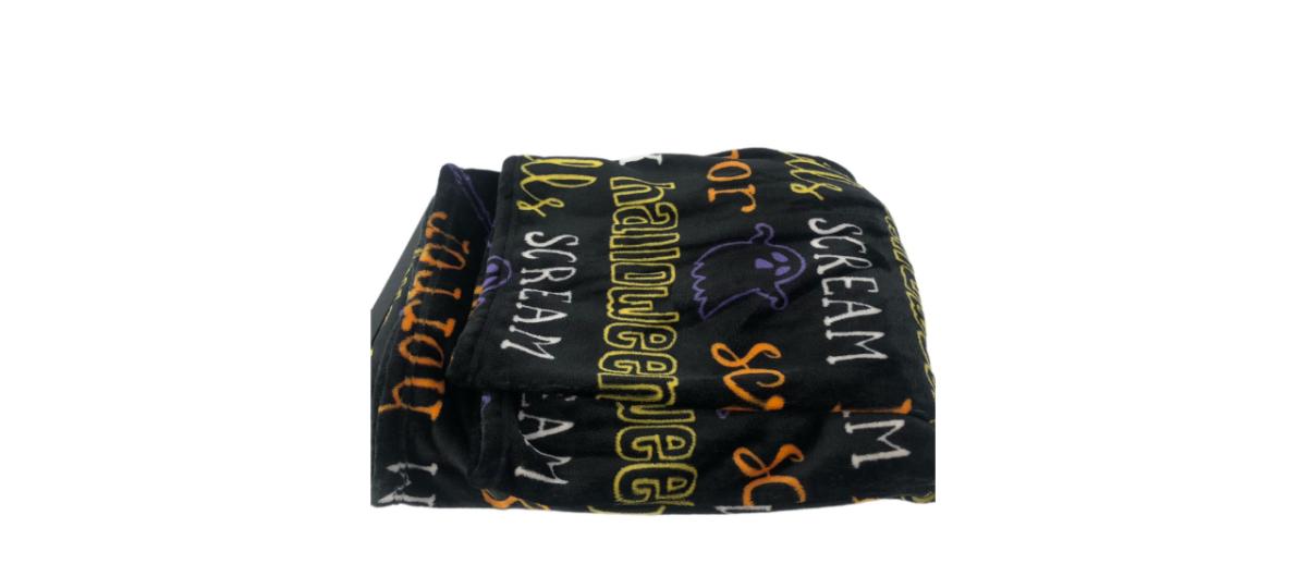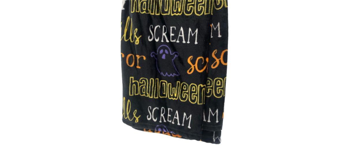 SUPER cute and SUPER soft spooktacular oversized Halloween throw blanket. Has all different spooky phrases and little ghosts! Measures 50” x 70”, 100% polyester. New with tags!