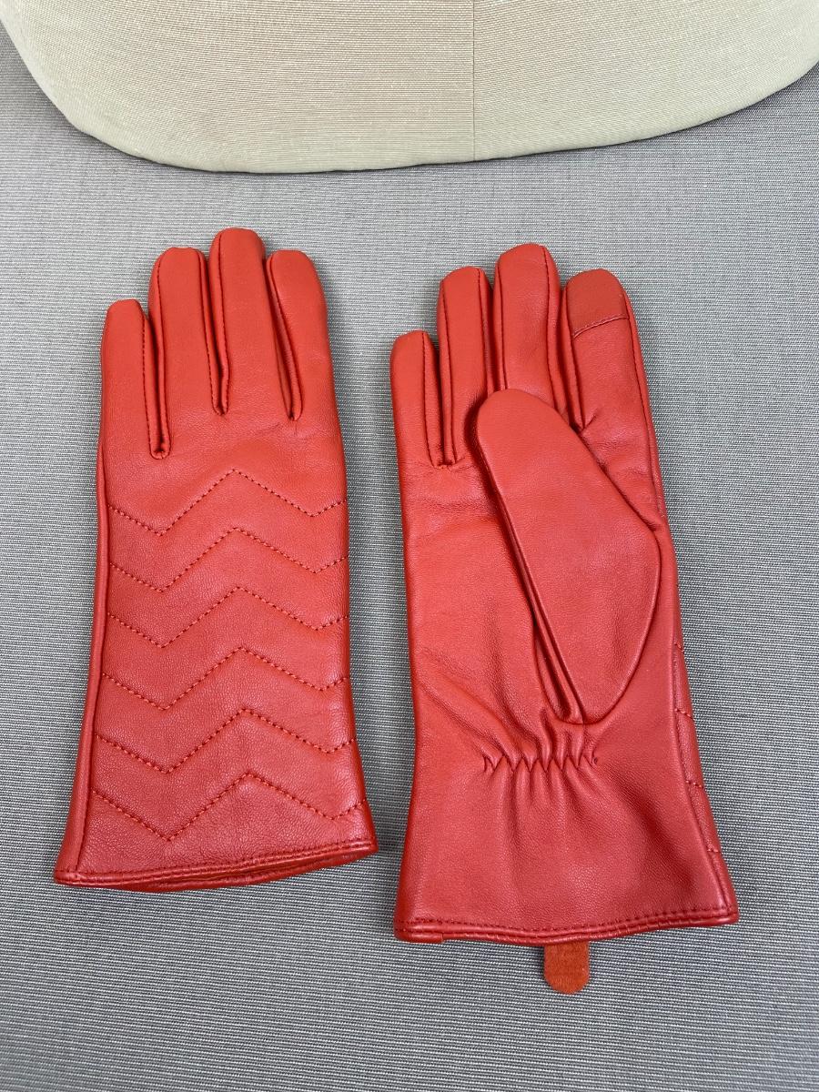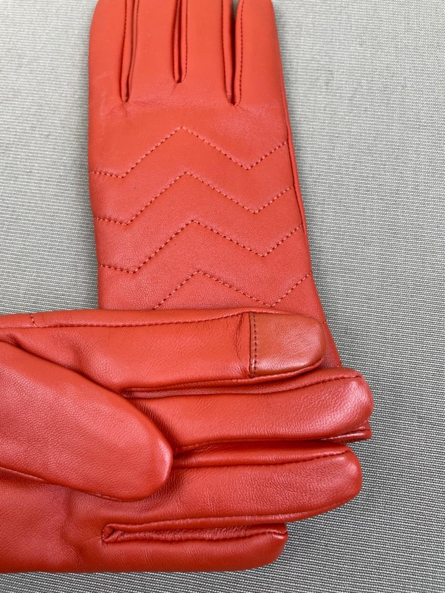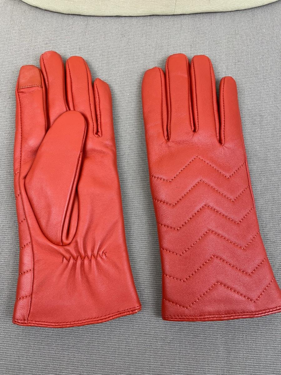 New Halston Brick Red Leather Gloves Chevron