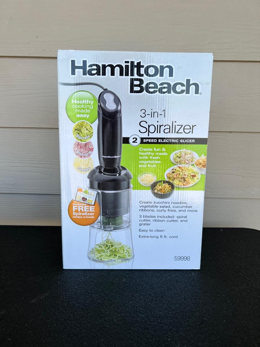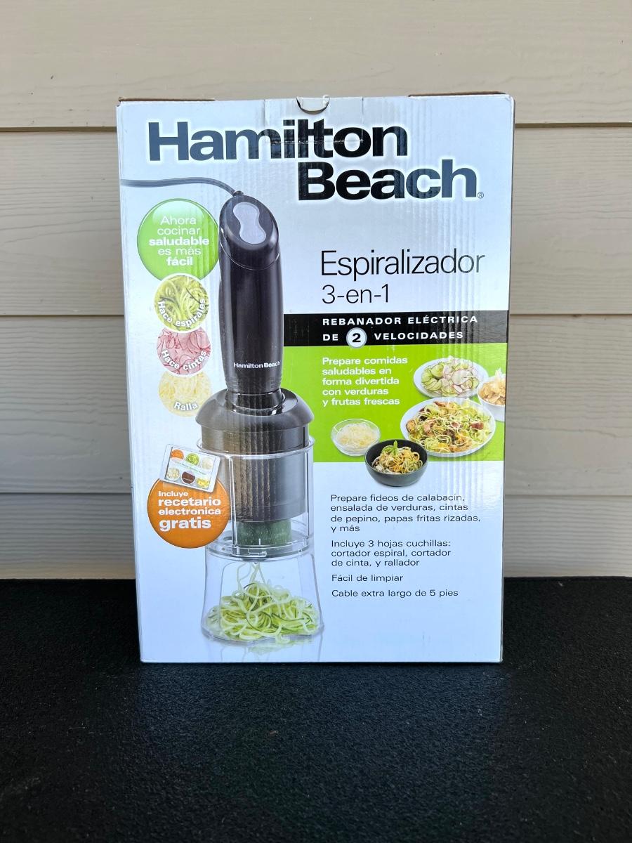 New in box, Hamilton Beach Spiralizer, 2 Speed Motorized Vegetable Slicer