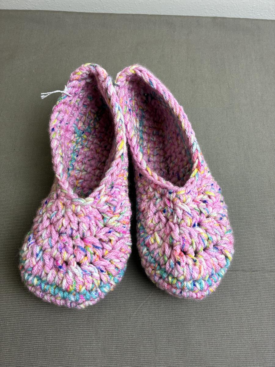 New Hand Crocheted Slippers Pink Size 8-9+