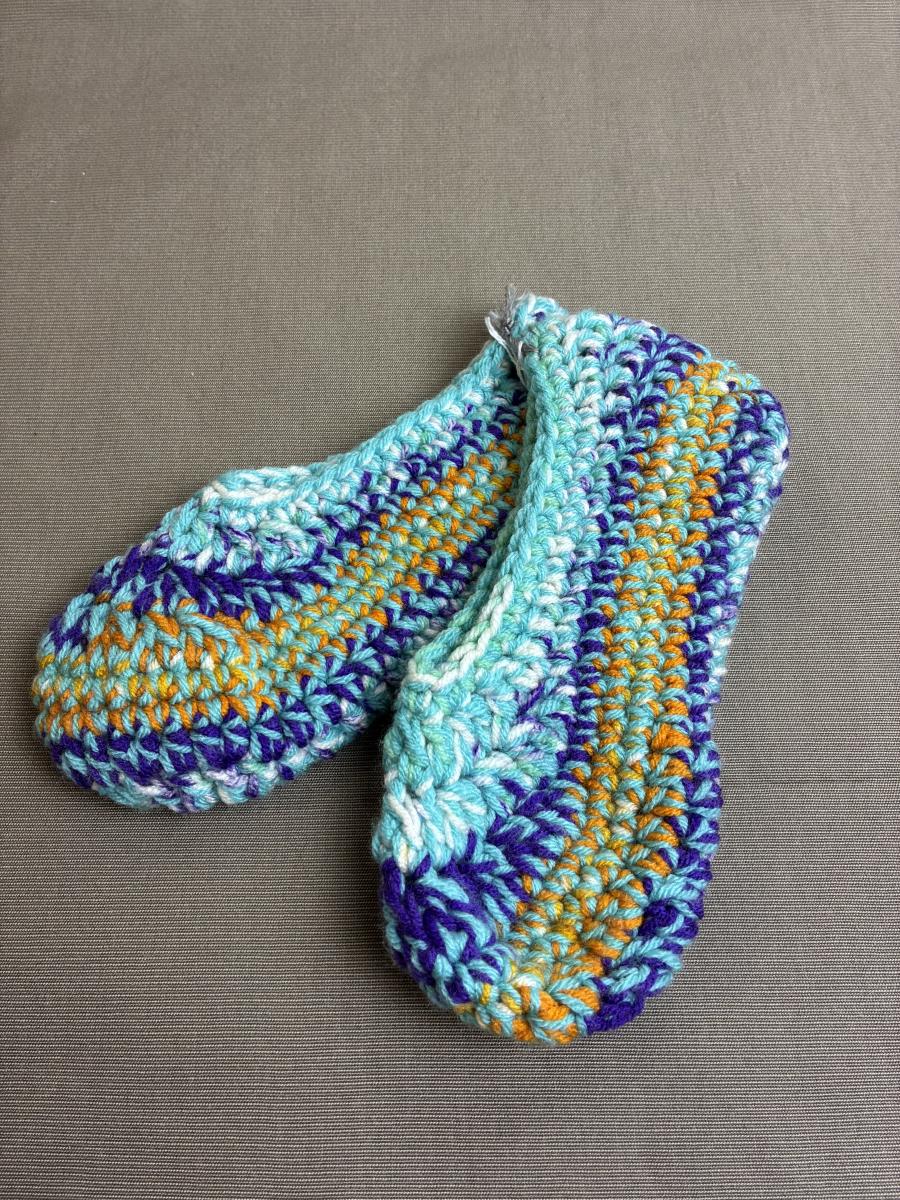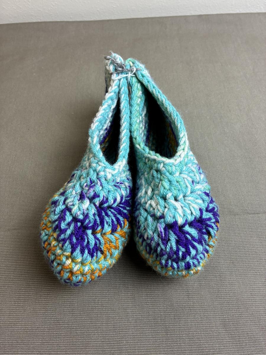 New Hand Crocheted Slippers Turquoise/Purple Sizes 7-8+