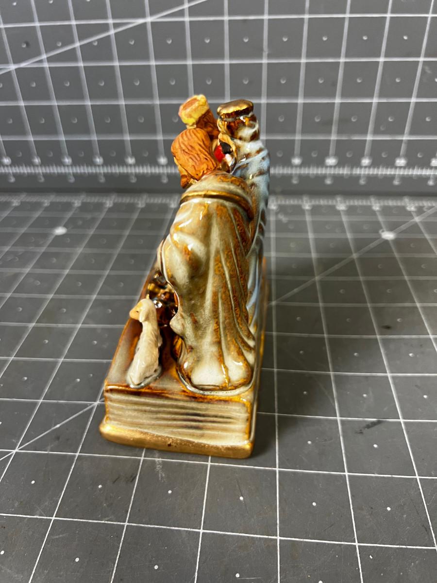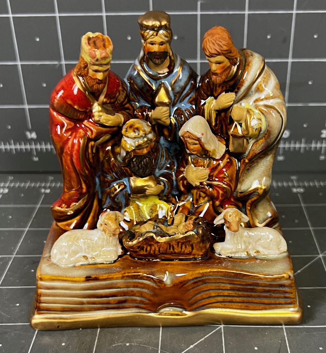 New Hand Painted Nativity Scene Light Brown Base with Lambs