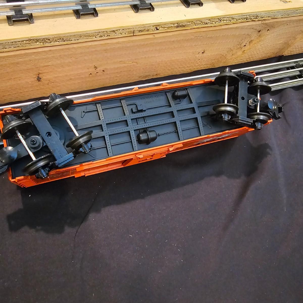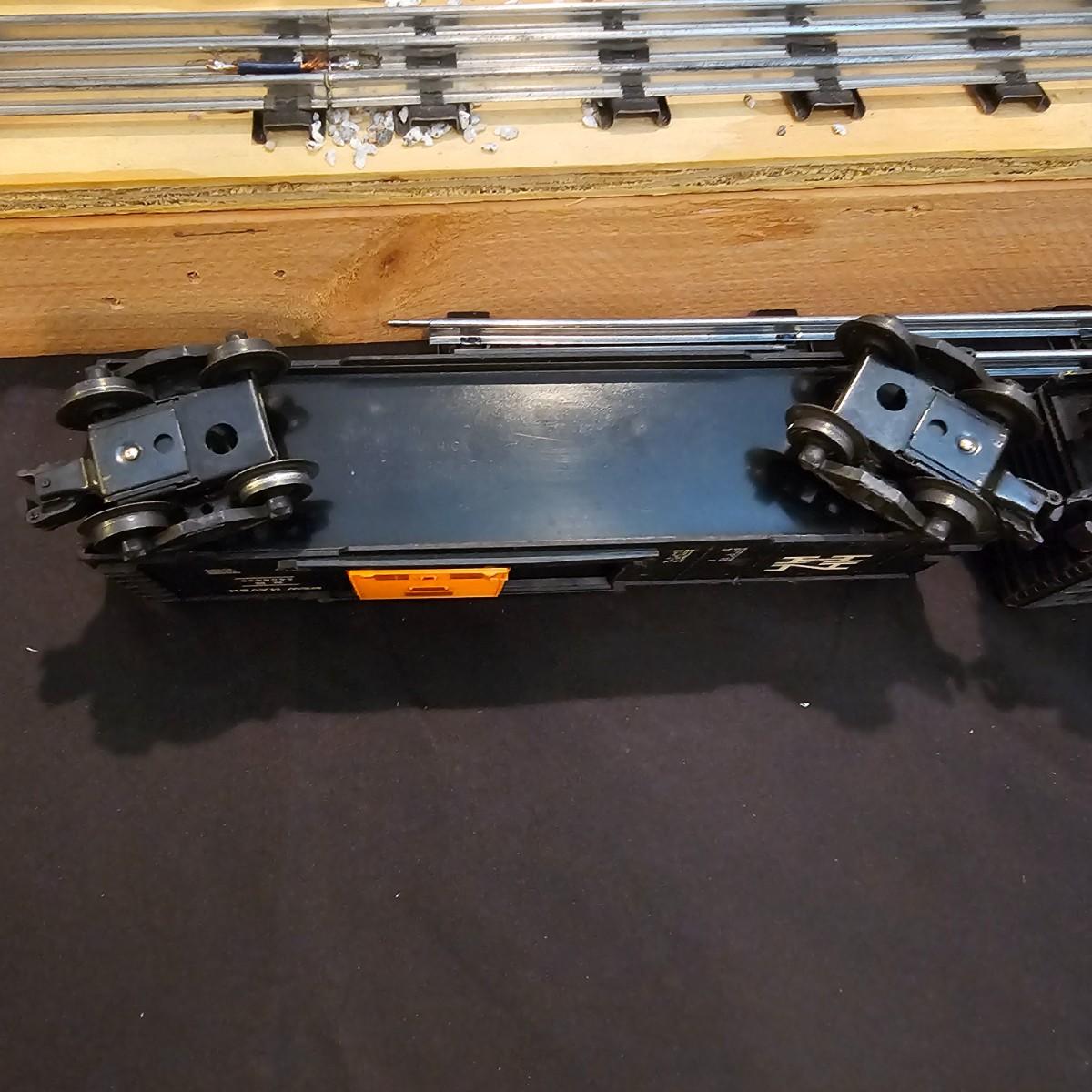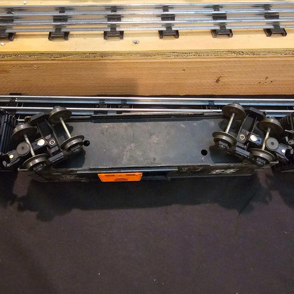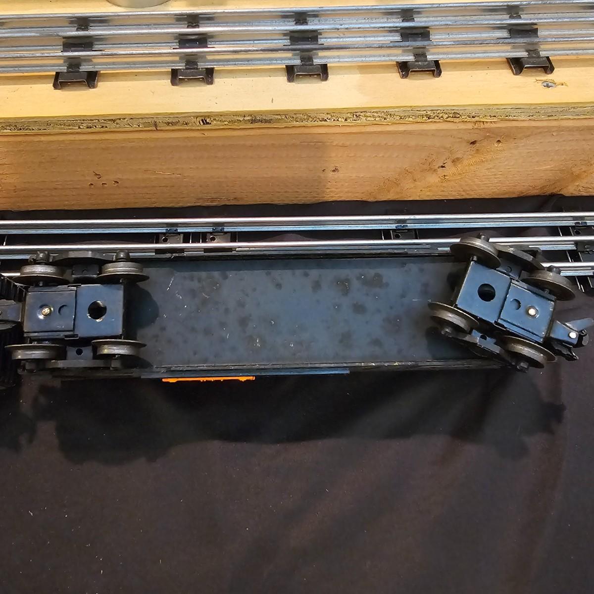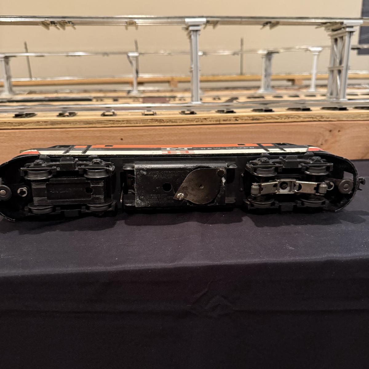 One rough shape EP5 electric engine in New Haven colors. Engine has rust and broken paint, missing some parts. Did not run. Also six New Haven box cars, one double door and five single door. The three black cars are all the same road number. Only one box for a boxcar. Approximately length of full train is 80". See photos for details. Please note that any price tag seen on an item was not put there by Sterling Transitions and does not reflect the current value of the item. Any train tracks shown in photos are not included but are available in another lot in this sale.