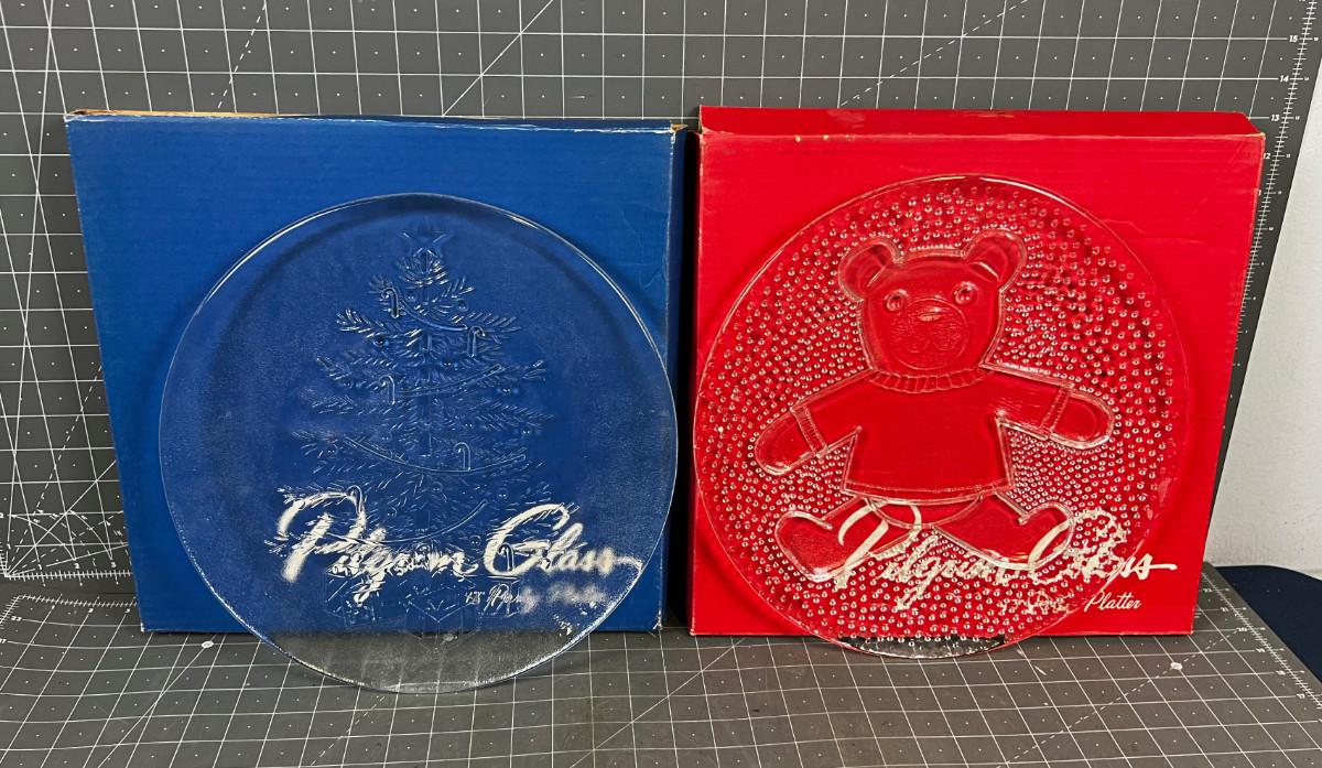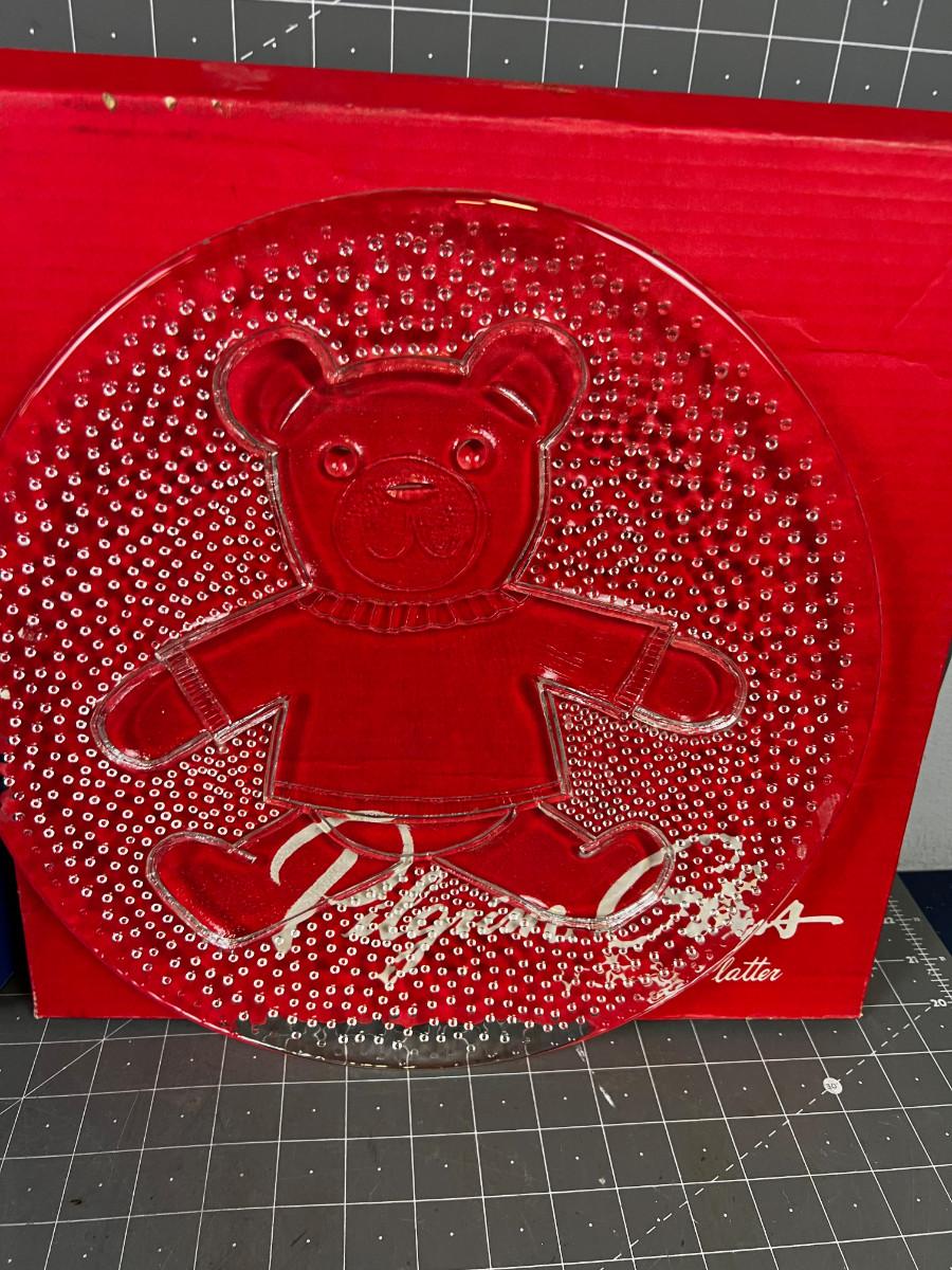 NEW Holiday Tree and Teddy Bear Glass Platter