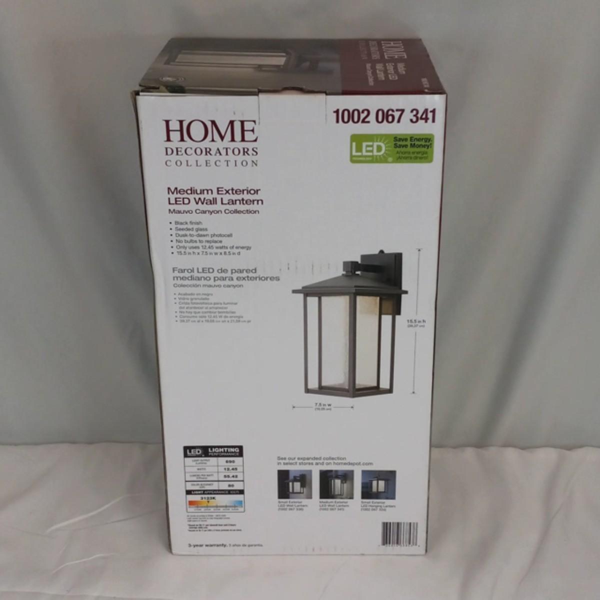 This is a brand new Home Decorators medium size exterior LED wall lantern in a black finish.