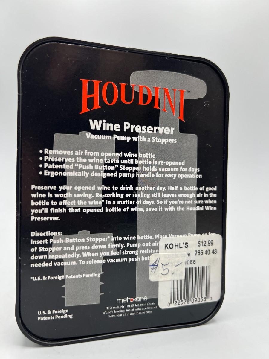 New Houdini Wine Preserver Vacuum Pump with 2 Stoppers