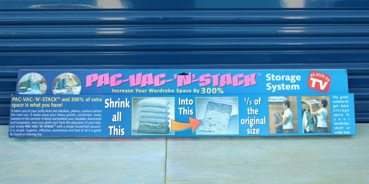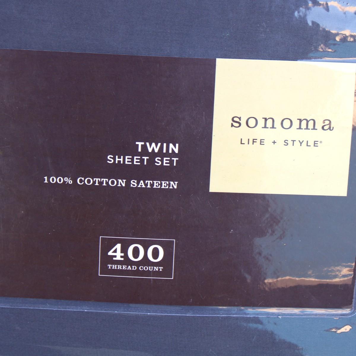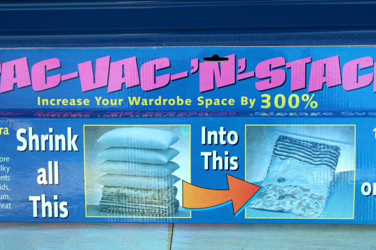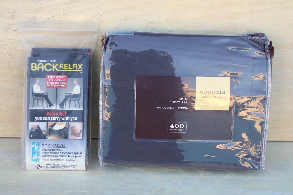 New household items:  Sonoma twin XL sheet set, BackRelax portable footstool and PacVac sacks.