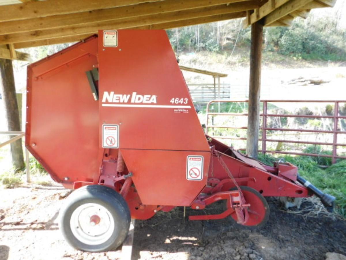 New Idea Model 4643 Round Hay Bailer appears to be in working condition. Great for lower HP tractors 40hp or more.
