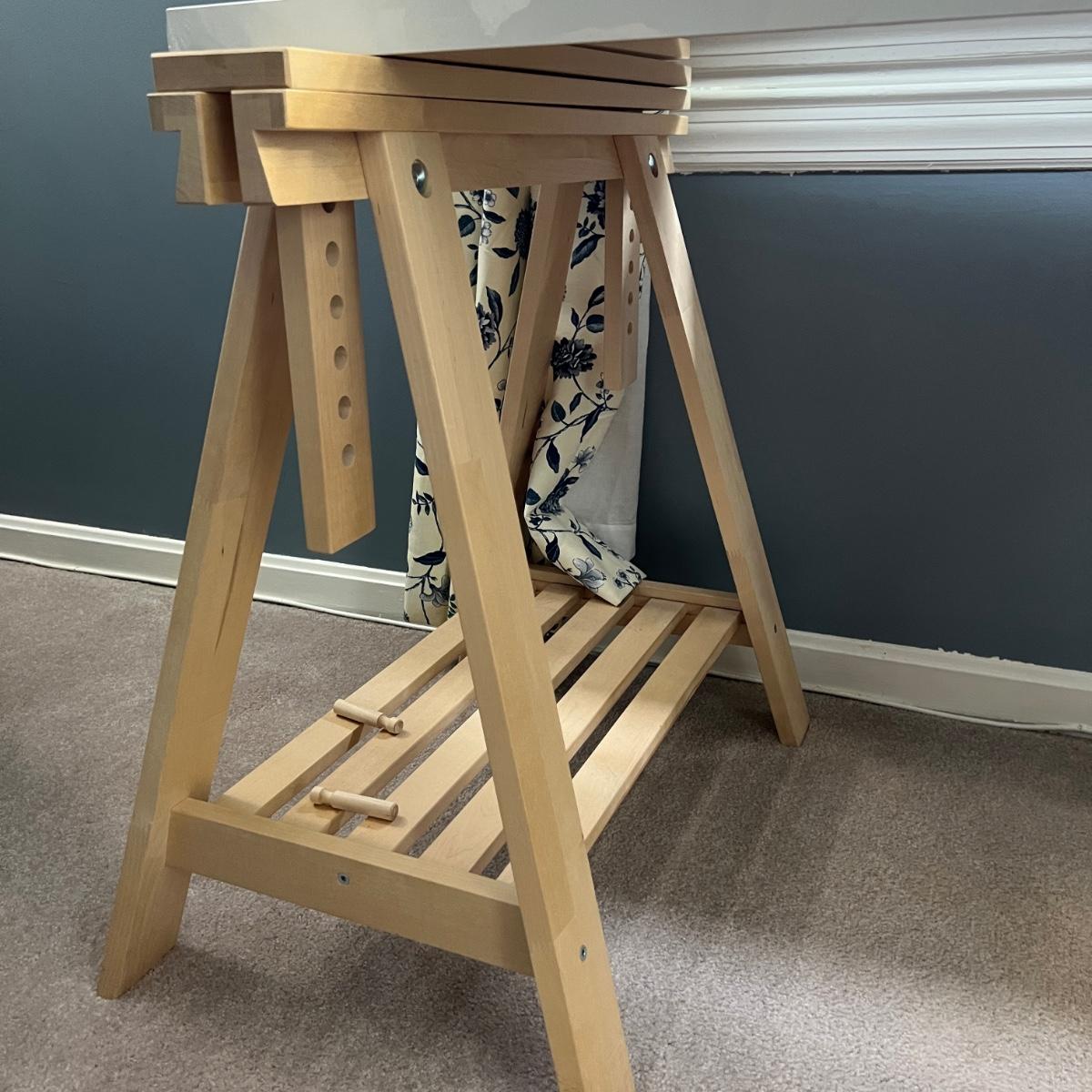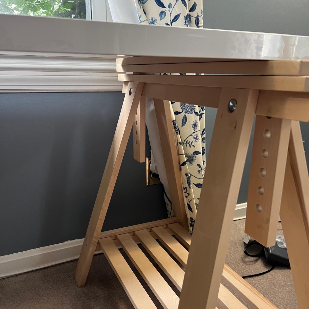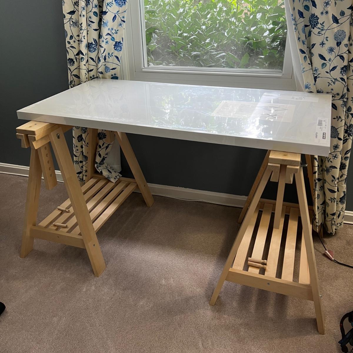 New Ikea Linnmon White Desk Table, Beech Wood Trestle Shelf Legs