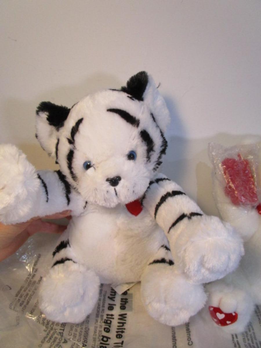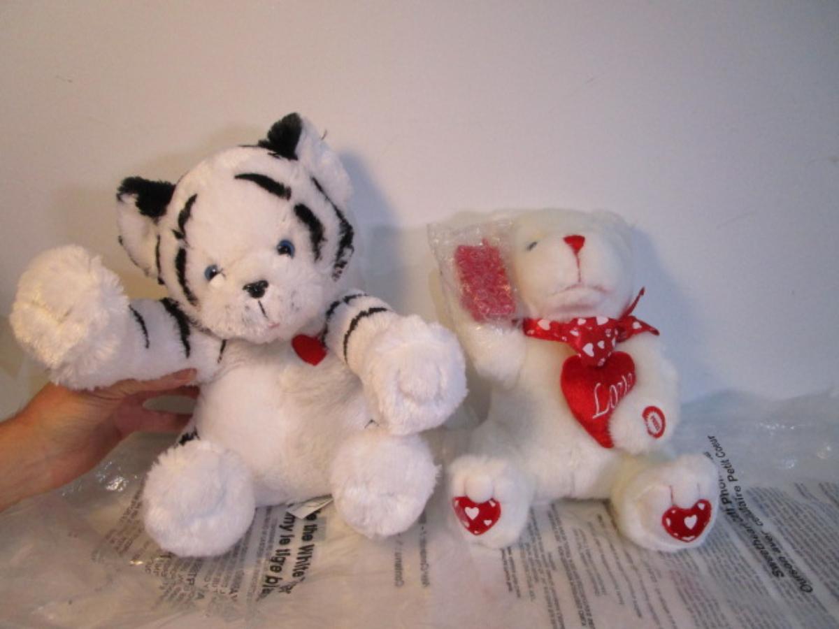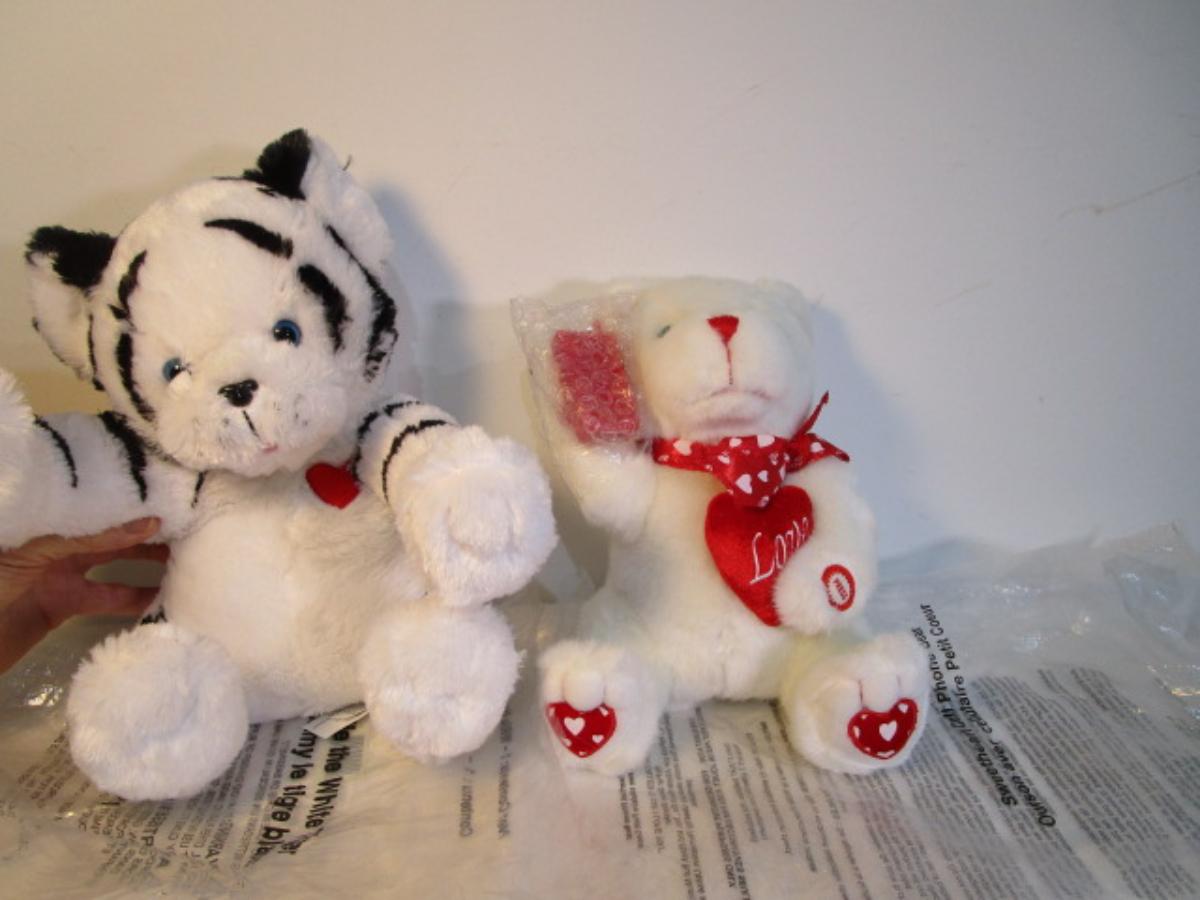 New in bags, 1 singing bear; 1 stuffed white tiger