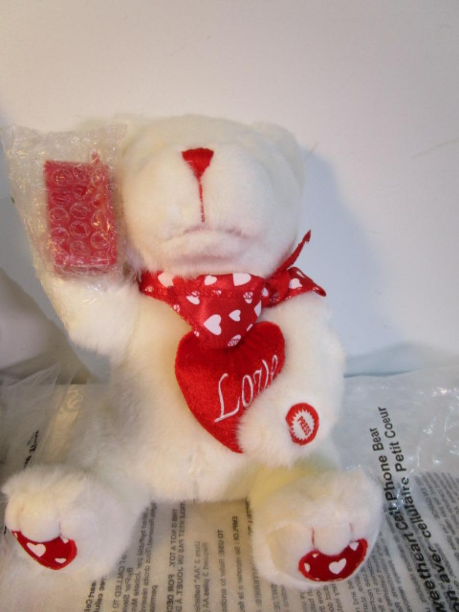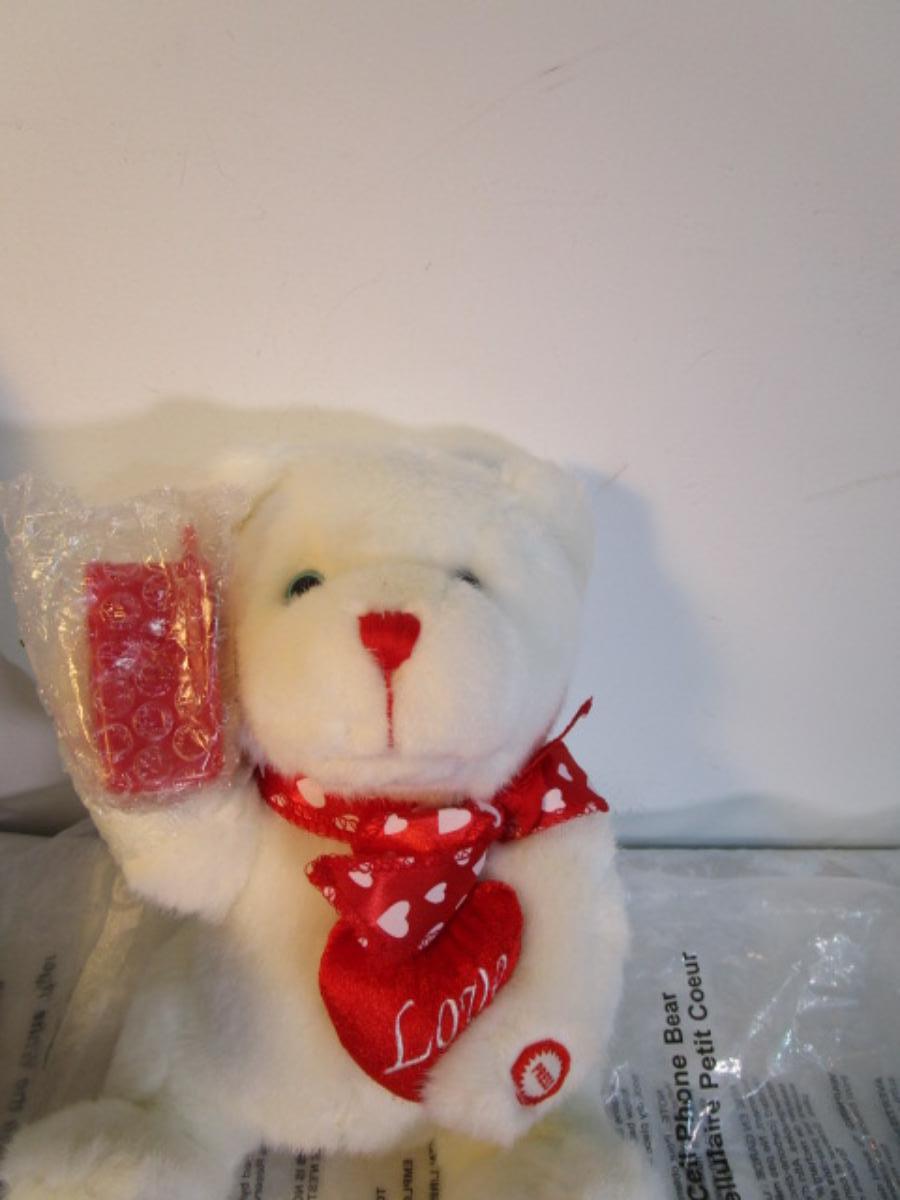 Telephone Sweetheart Bear sings "I Just Called to Say I Love You" & phone lights up, takes 3 AA batteries not included. See pictures