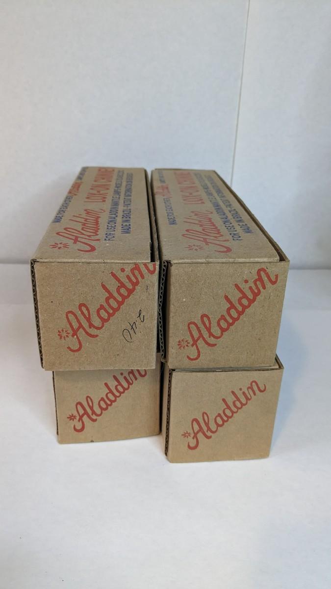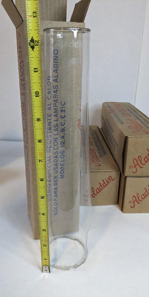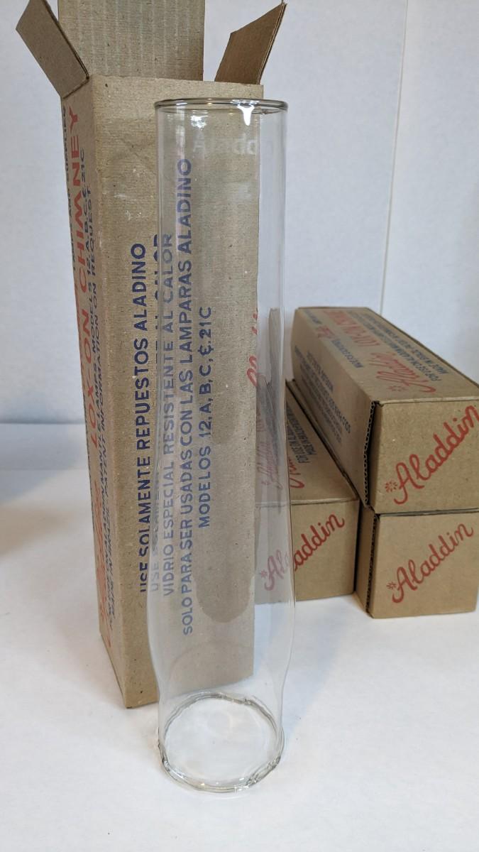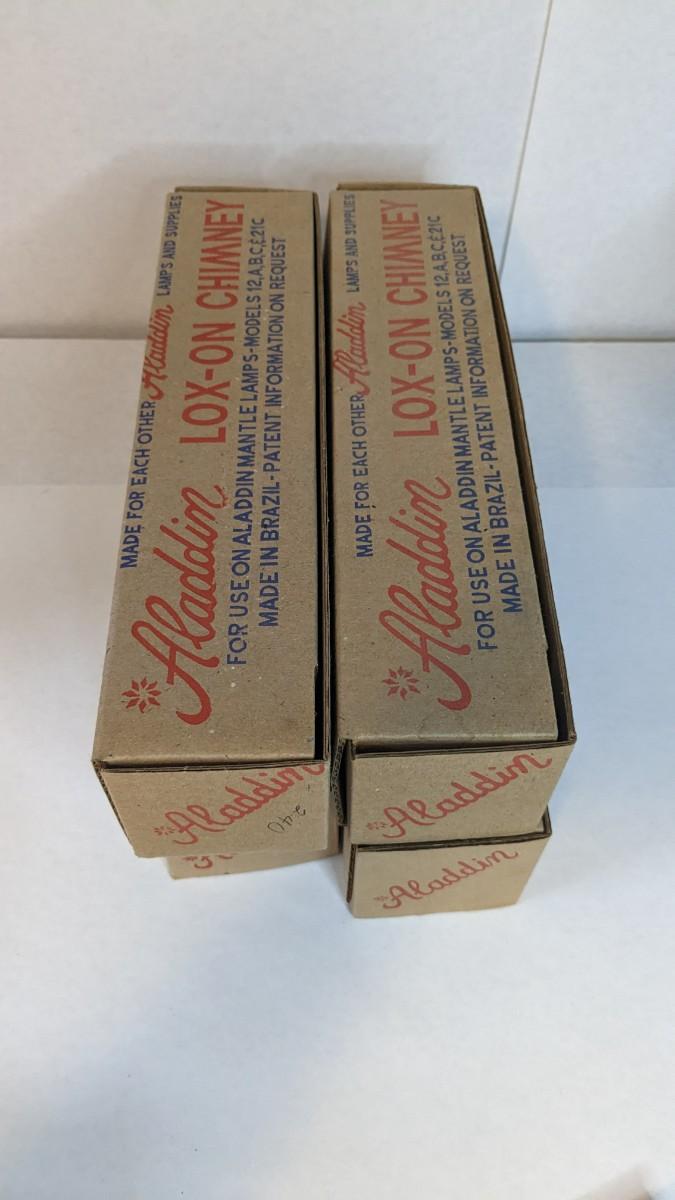 (4) brand new, in box, Aladdin brand chimneys for mantle lamp models 12, A, B, C & 21C.
