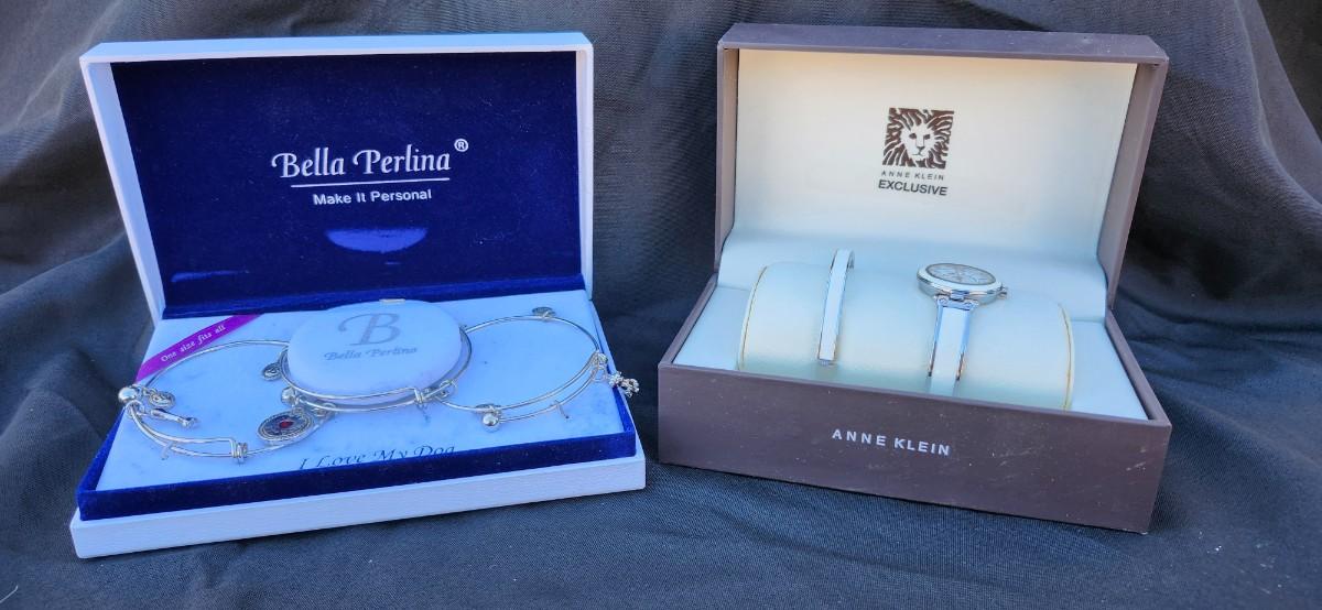 New in Box Anne Klein Women's Bangle Watch & Bella Perlina Charm Bracelet Box Set Of 3