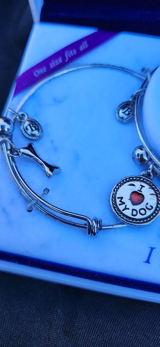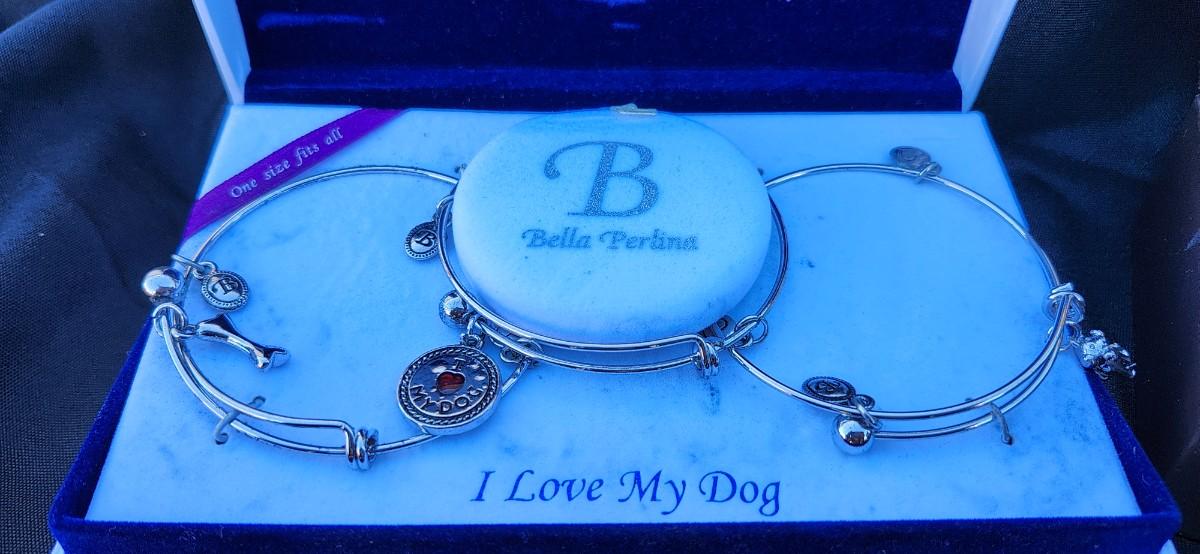 Anne Klein Women's Bangle Watch and Premium Crystal Accented Bracelet Set and Bella Perlina Charm Bracelet Box Set Of 3 I love My Dog