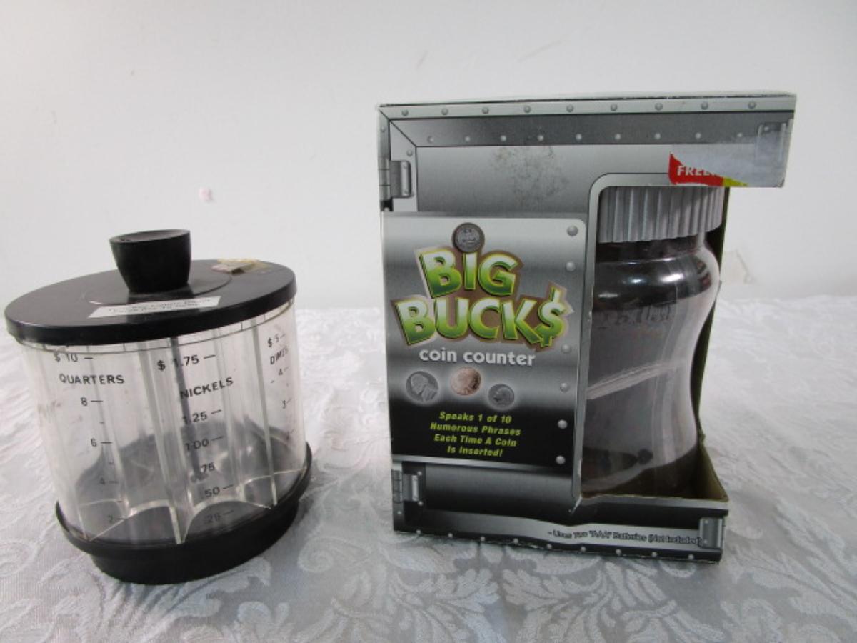 New in box Big Bucks coin counter, and 1 new counting coin bank