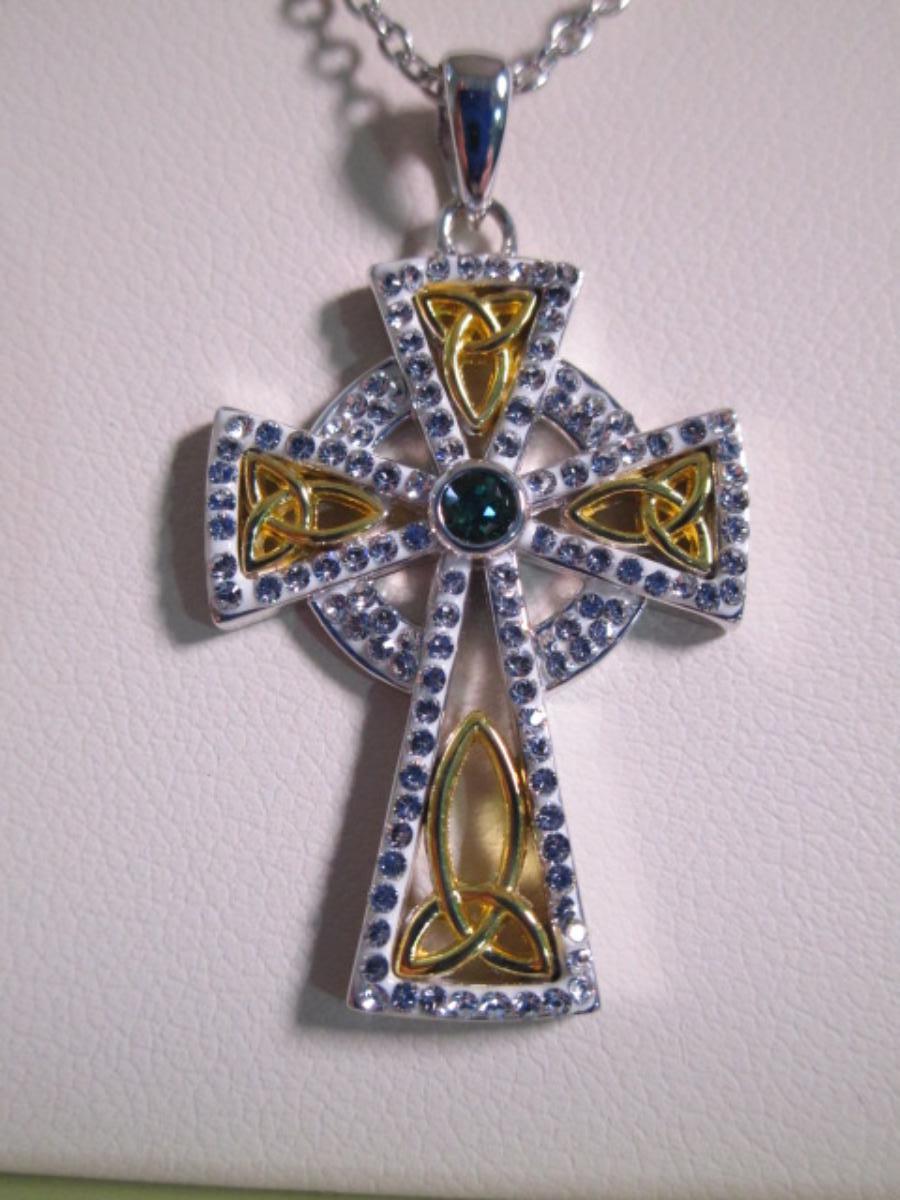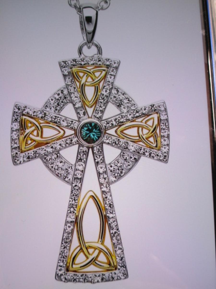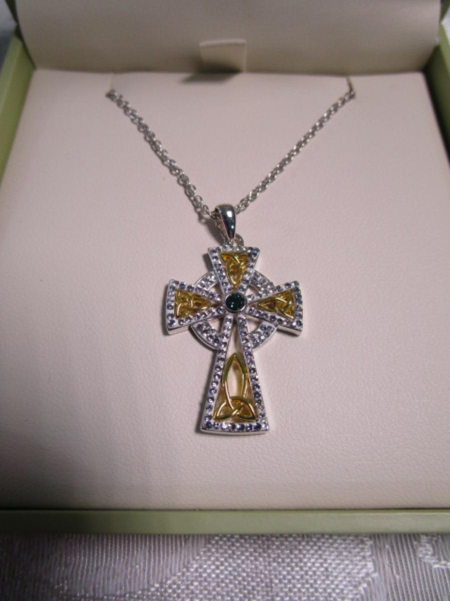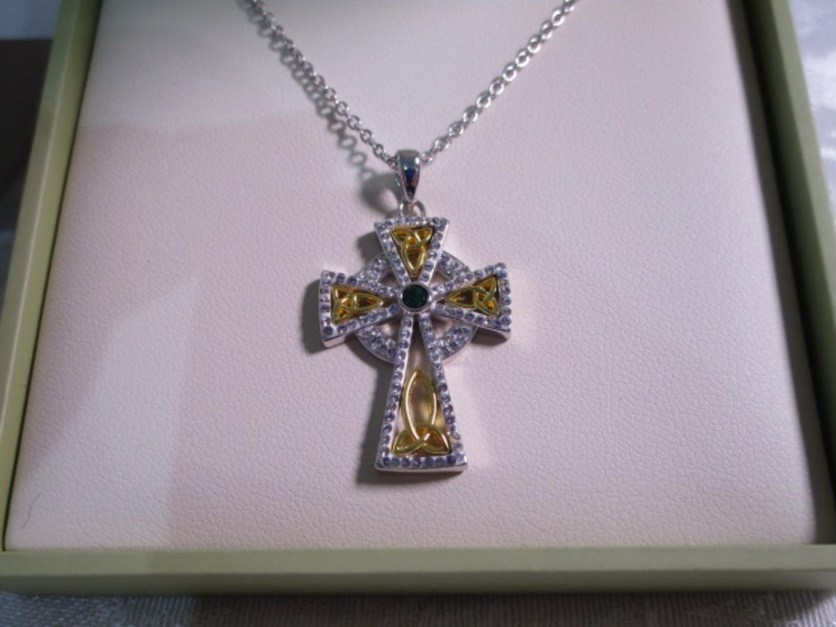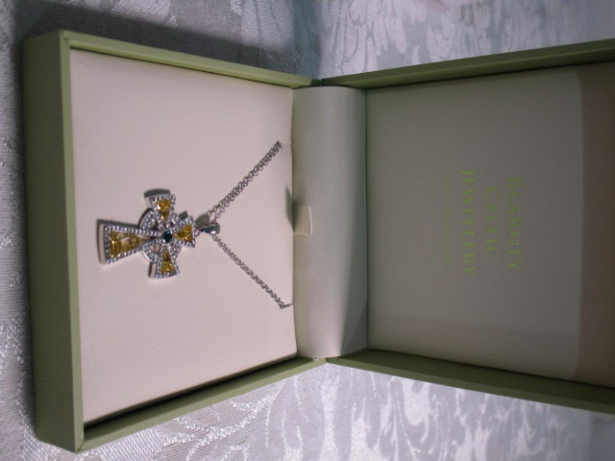New in box Blarney gold-plated Celtic cross with Swarovski Crystals