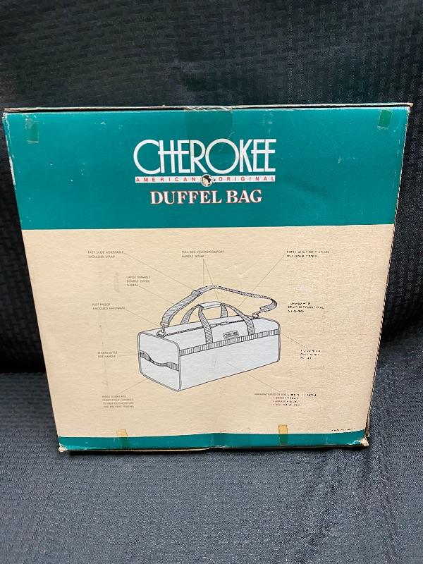 New in the box, Cherokee brand duffel bag. Extra large size, 30"x15"x15". Black.