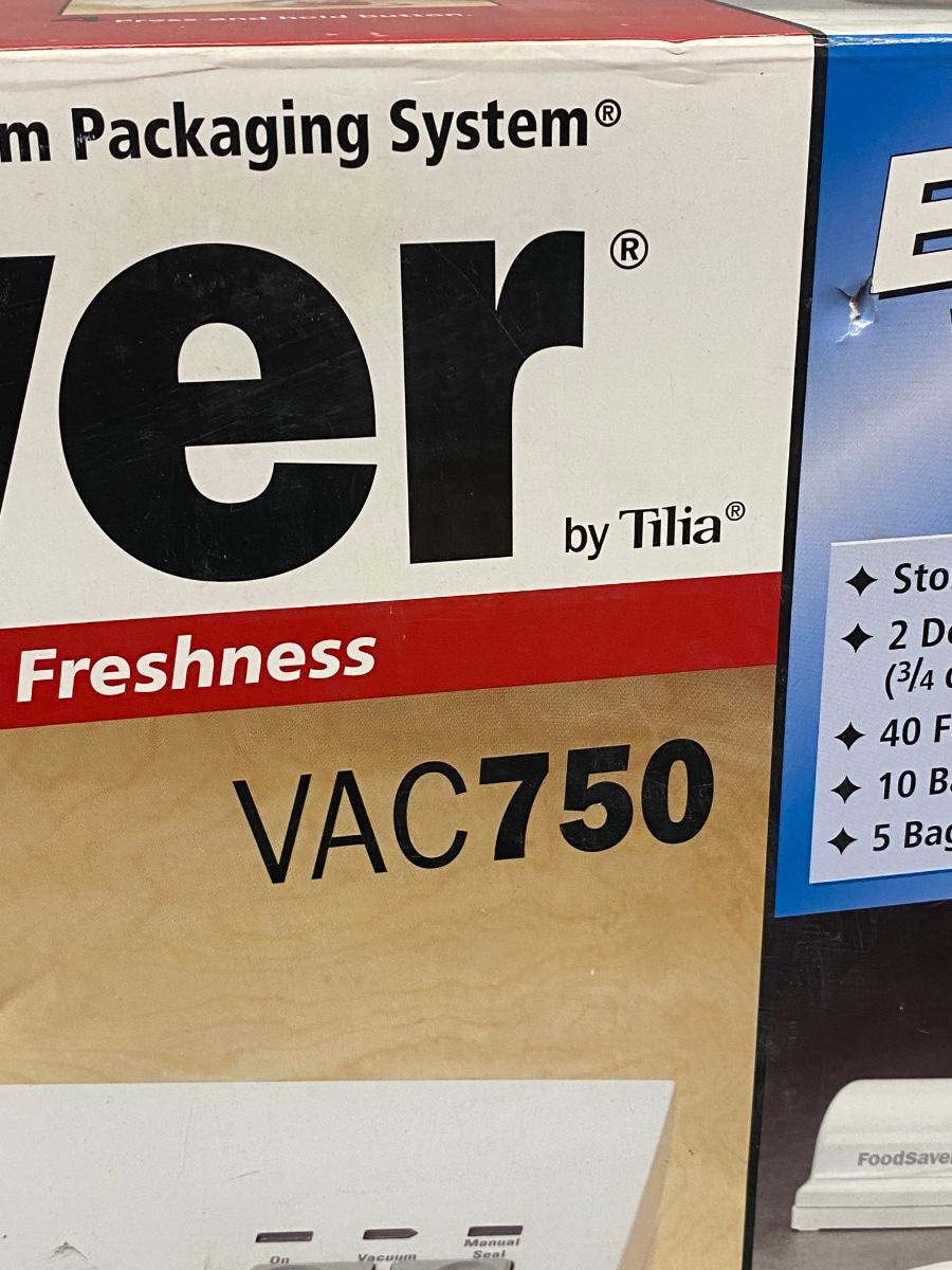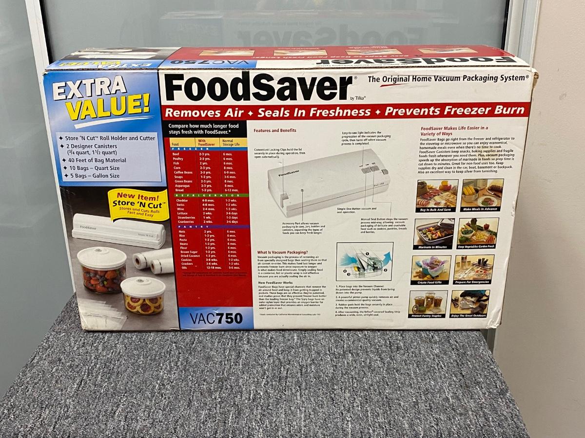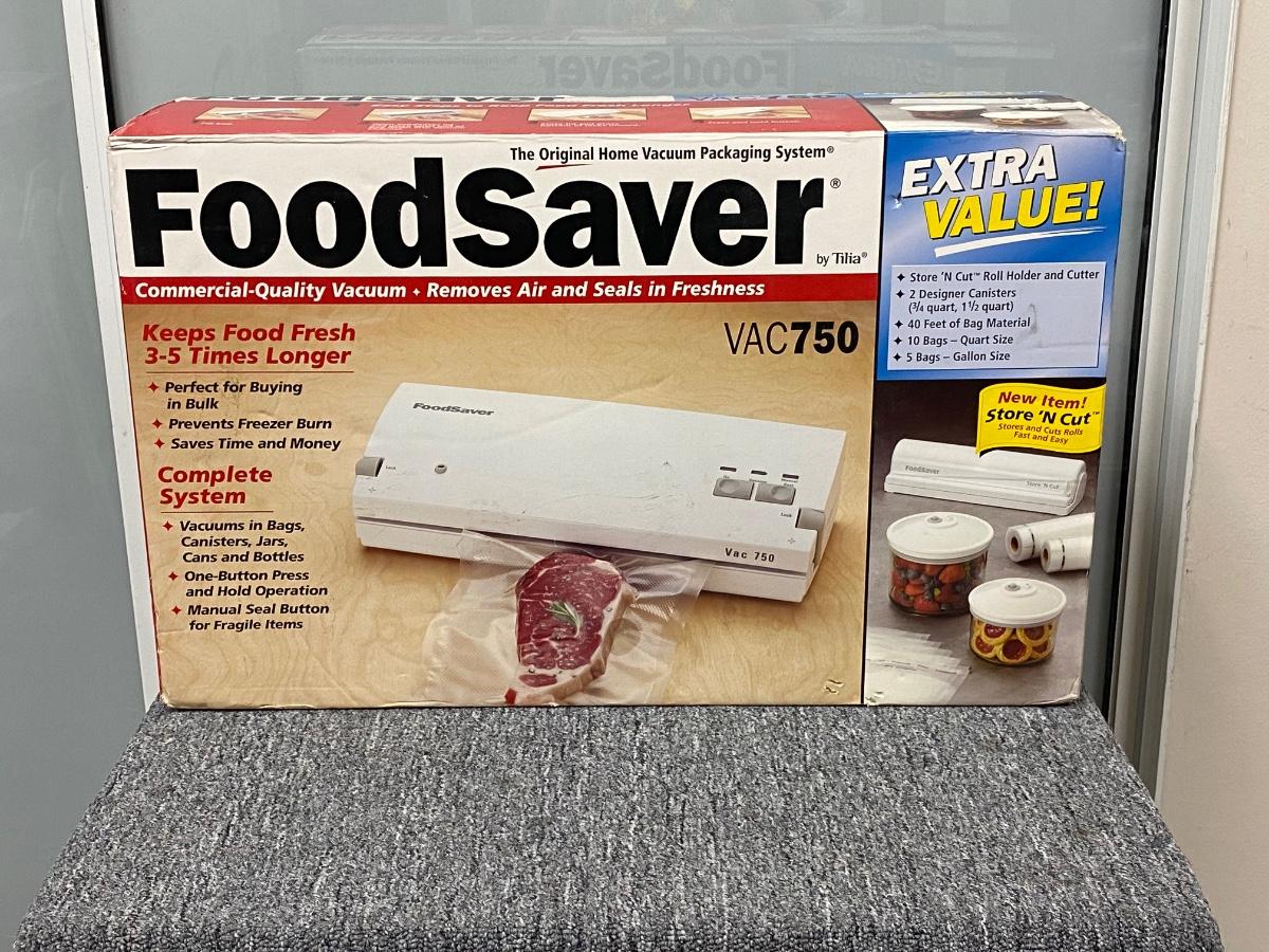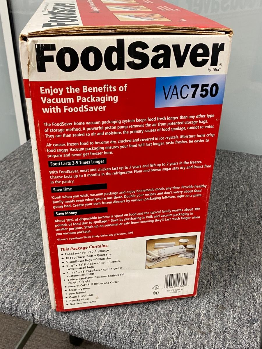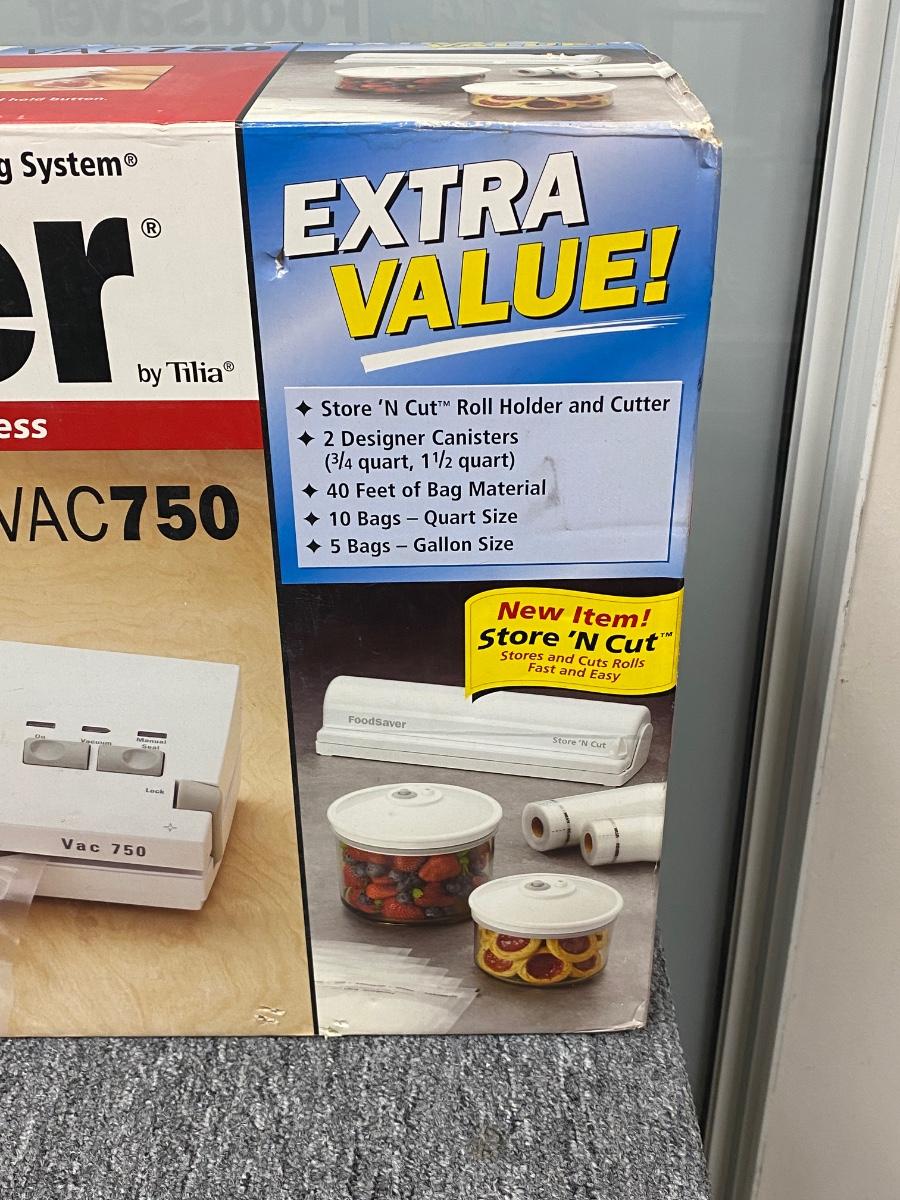 NEW UNOPENED. Food Saver VAC750, sealing system. Comes with everything needed to store food items including a set of canisters. Checked the box over and it has never been opened flaps are still glued.