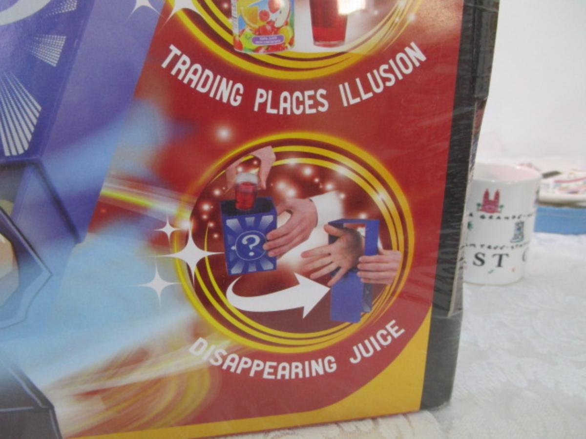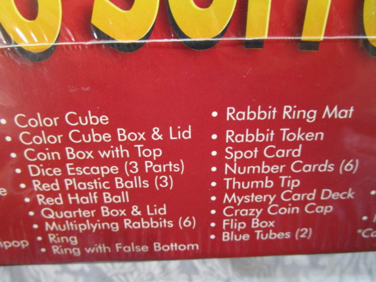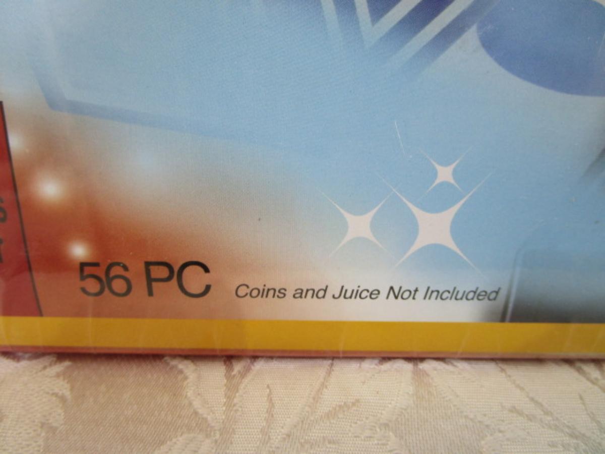 56 pieces, Has 100 tricks & online instructions, does not include coins or juice