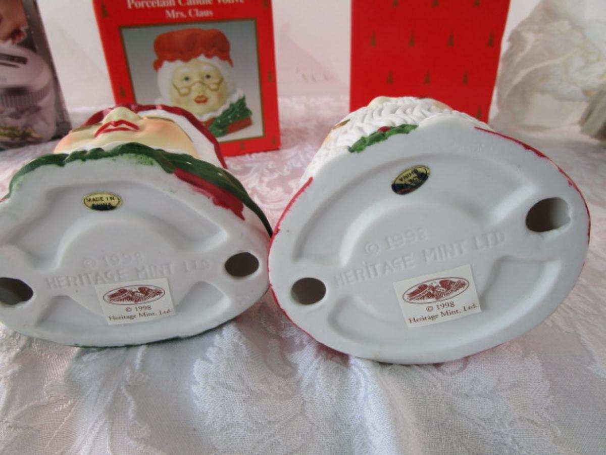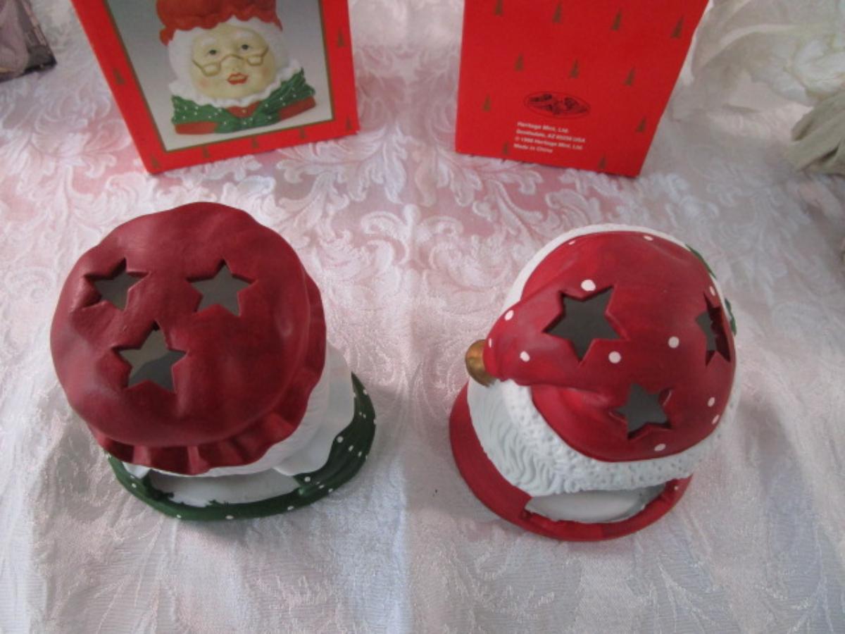From the Heritage Mint, holds votive candles, Mr. Santa is 4-1/2" tall, Mrs. Santa is 4-1/4" tall