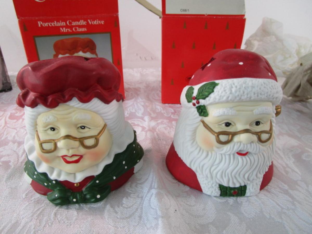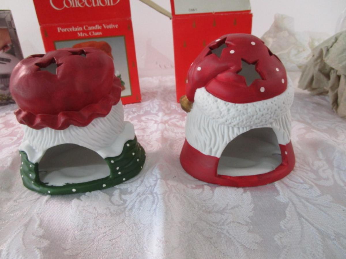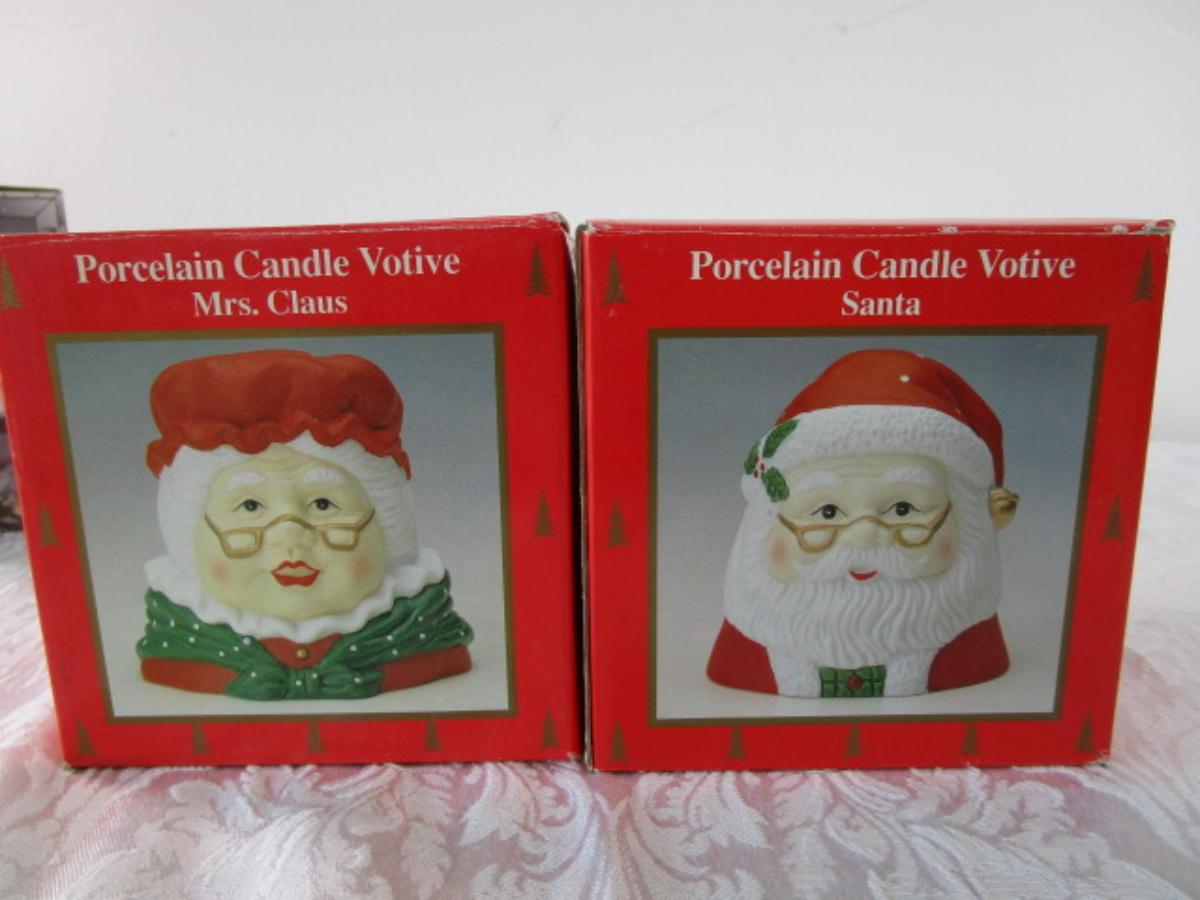 New in box, Mr. & Mrs. Santa porcelain candle holders