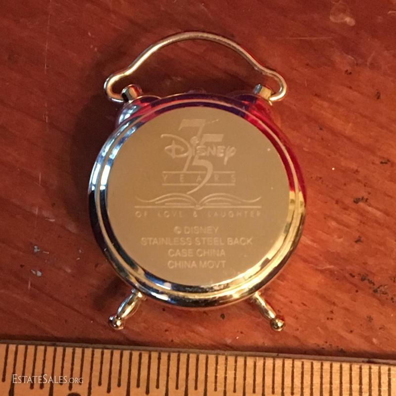 "75 YEARS OF FUN & LAUGHTER" it reads on the box and the back of clock. Stainless steel back, China. No scratches :)