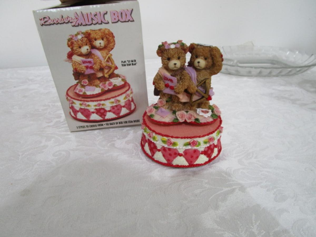 New in box, Revolving music box with angel bears