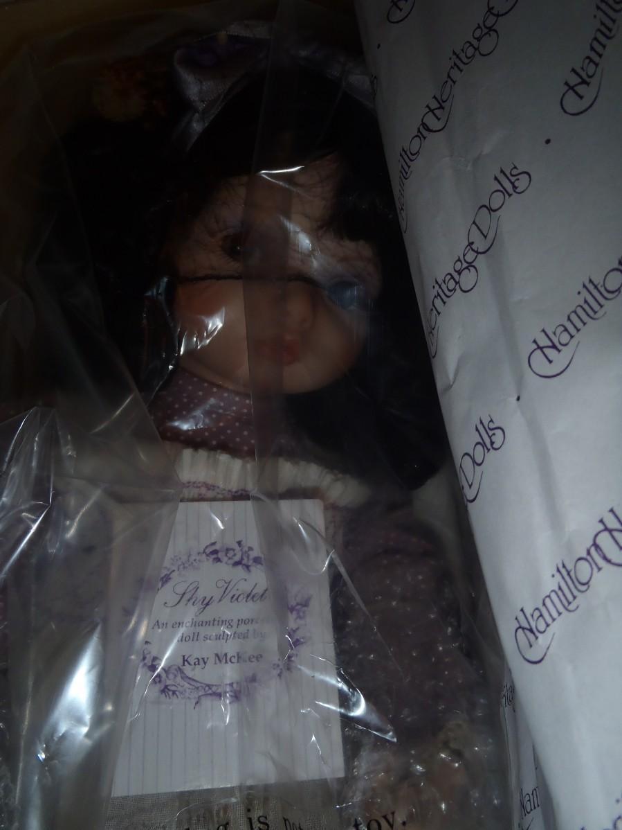 New in box; "Shy Violet" Porcelain Doll; Hamilton Collection