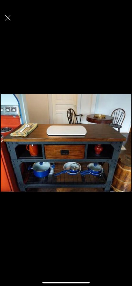 Industrial workbench with endless uses. Sturdy enough for your workshop and also great look for your industrial farmhouse vibe