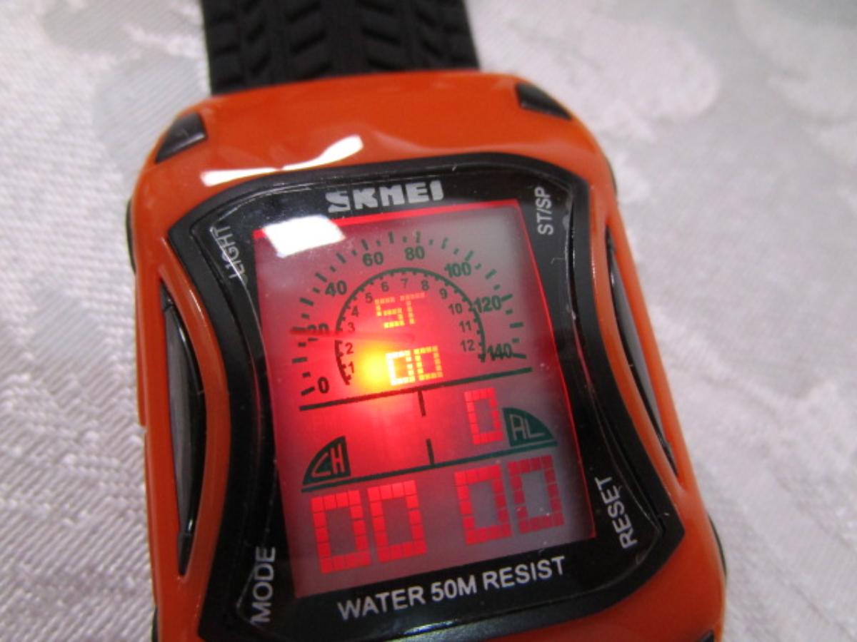 Has chronogram mode, alarm mode, & normal time display mode. Lights up. Includes instructions