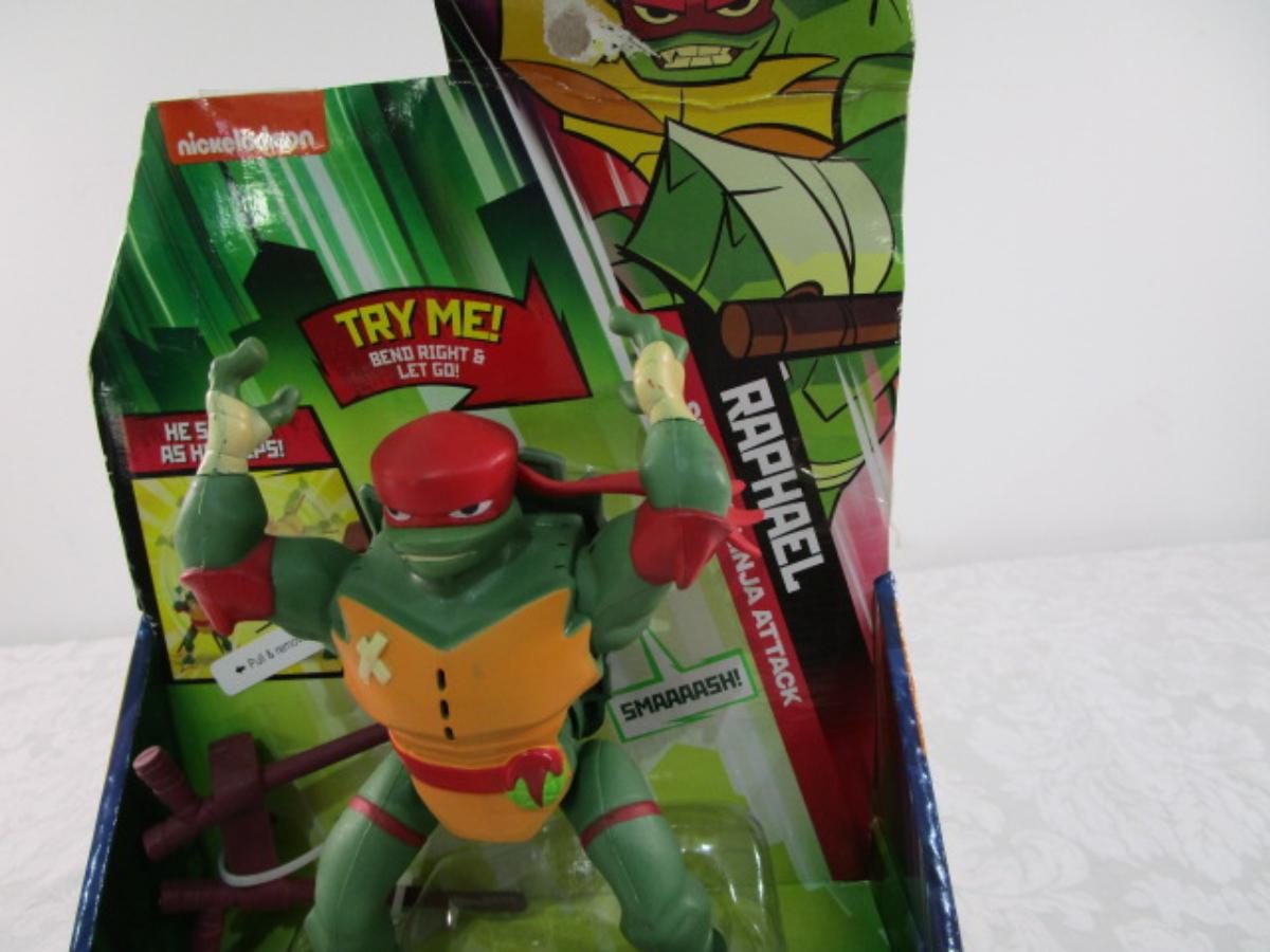 New in pkg, Teenage Mutant Ninja Turtles Raphael, flips & yells