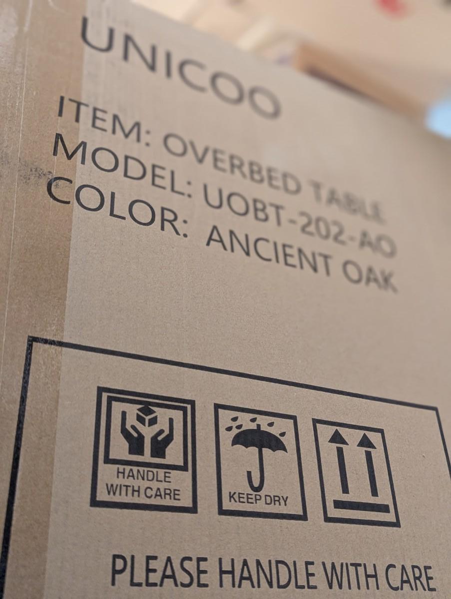 New In The Box UNICOO Over Bed Table Ancient Oak Box 3