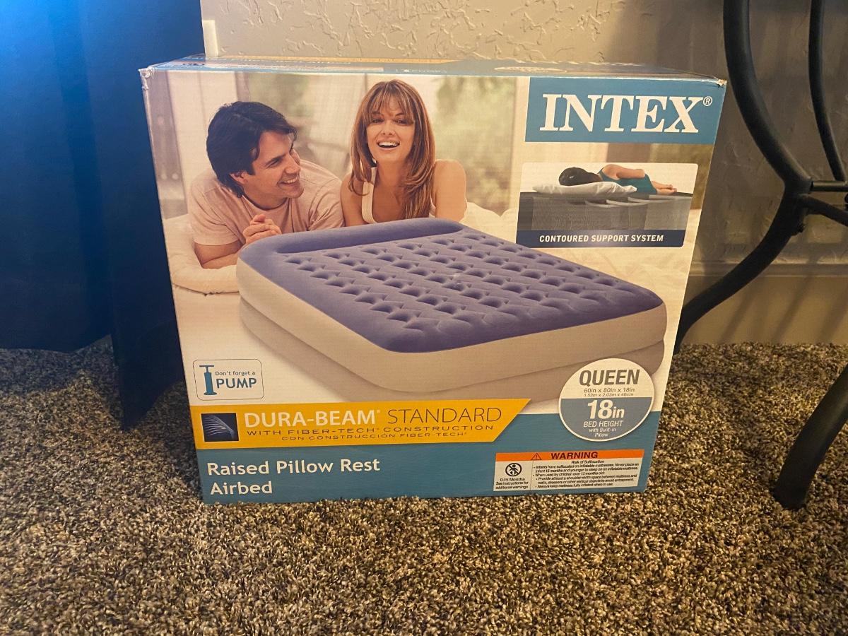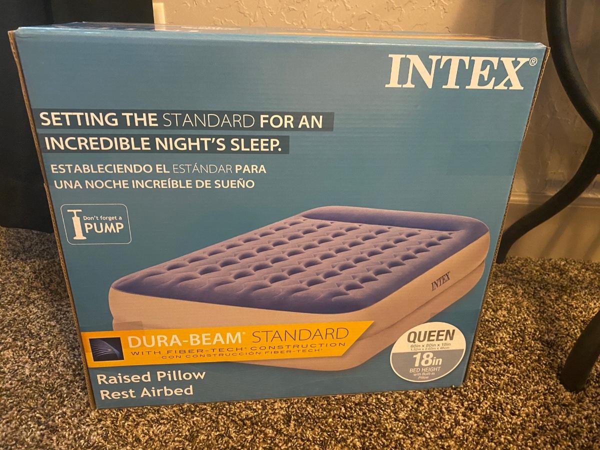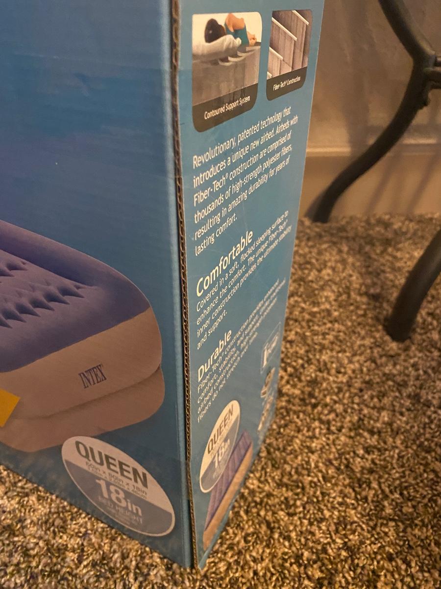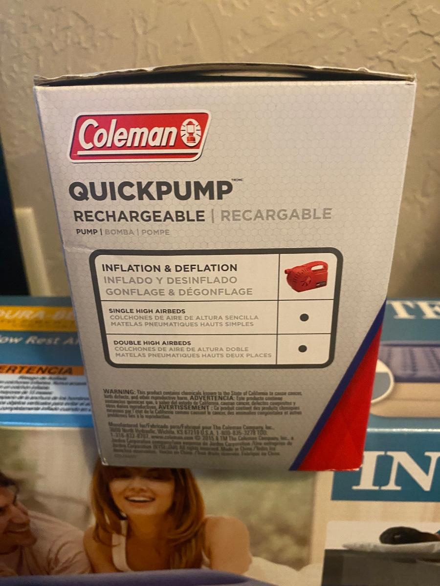 NEW INTEX 18” TALL QUEEN AIR MATTRESS AND COLEMAN ELECTRIC AIR PUMP