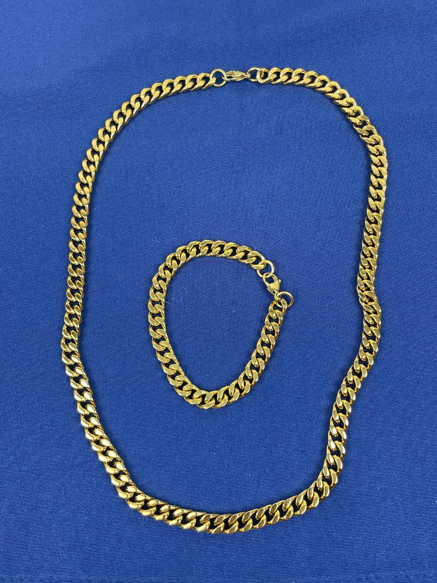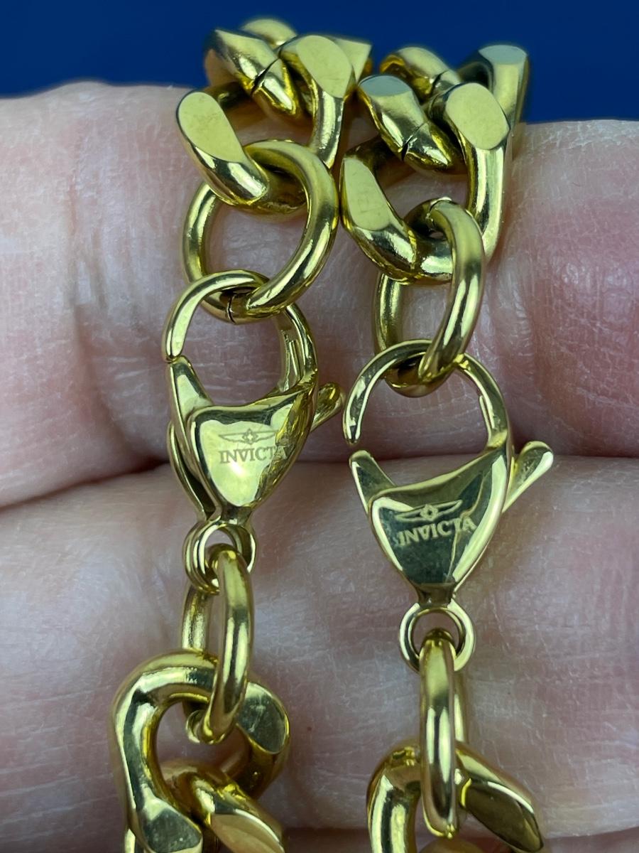 New Invicta Men’s Gold Stainless Steel Bracelet & Necklace Set