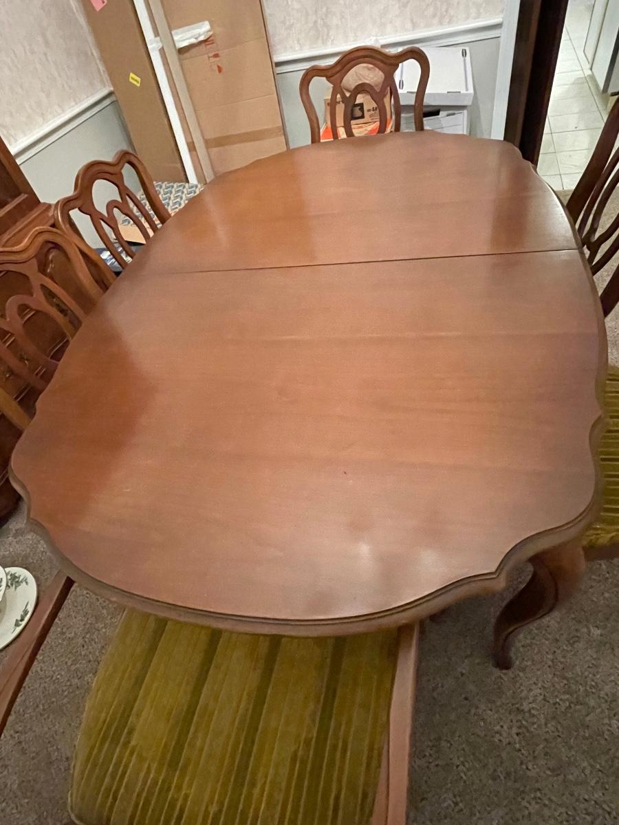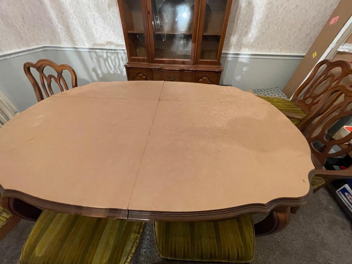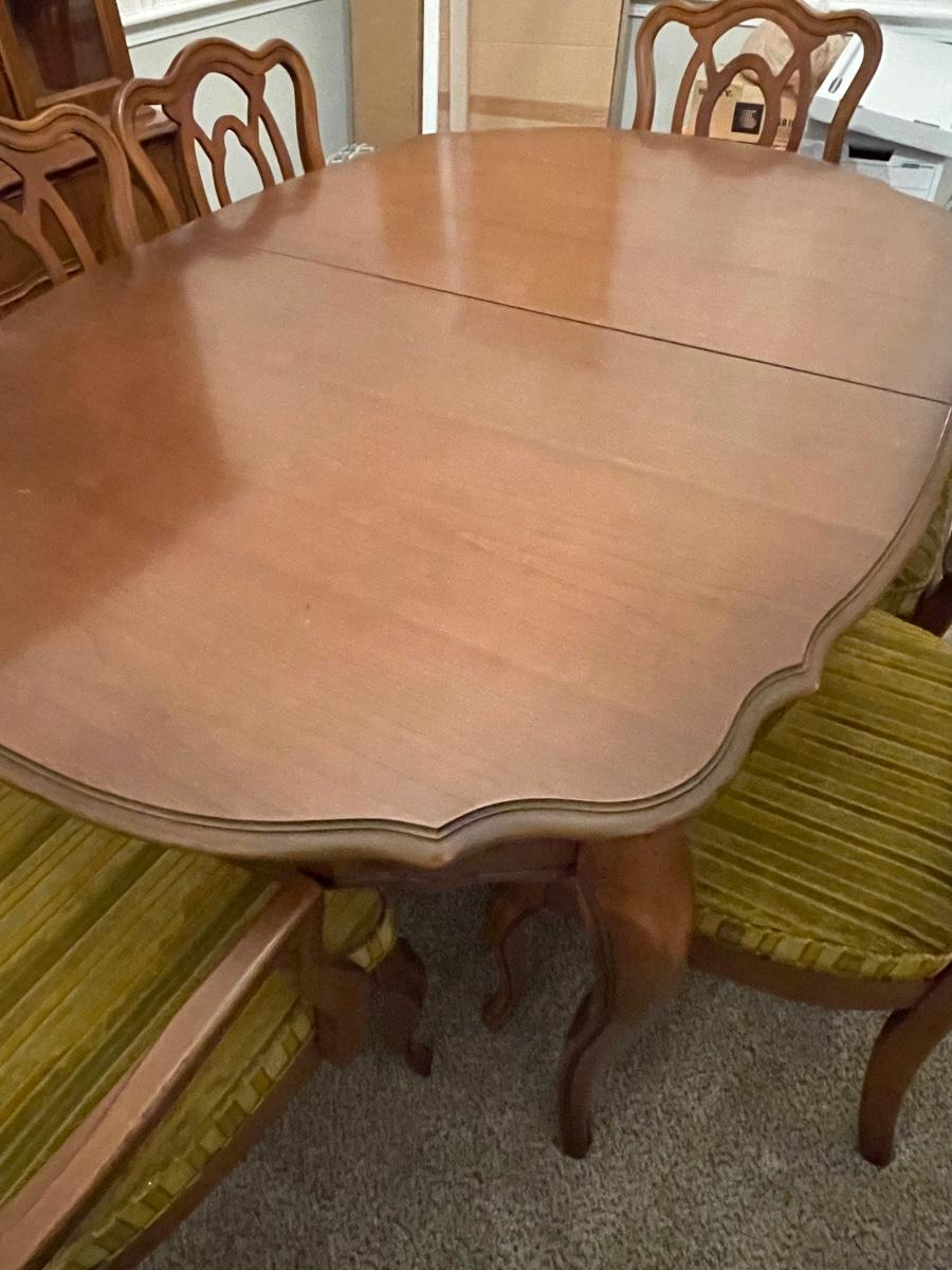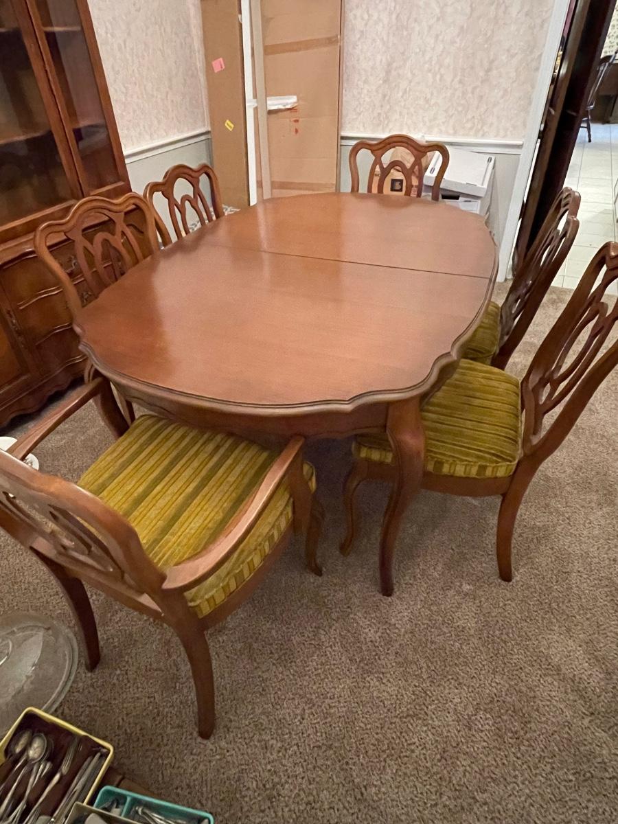 Vintage Bassett Dining Table with 8 Chairs and Custom Cover