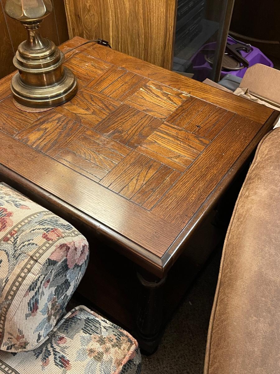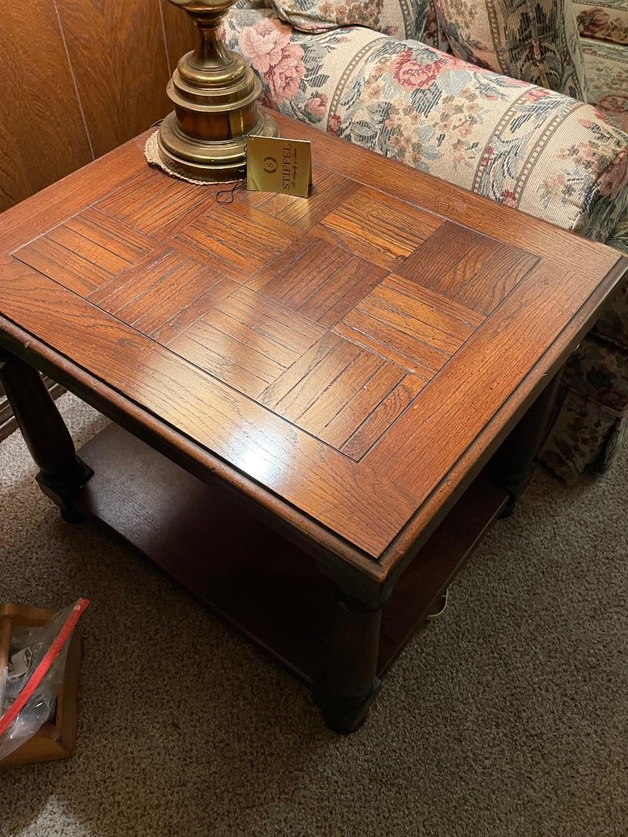 Two Vintage Henredon Block Design End Tables with Shelf Bottom