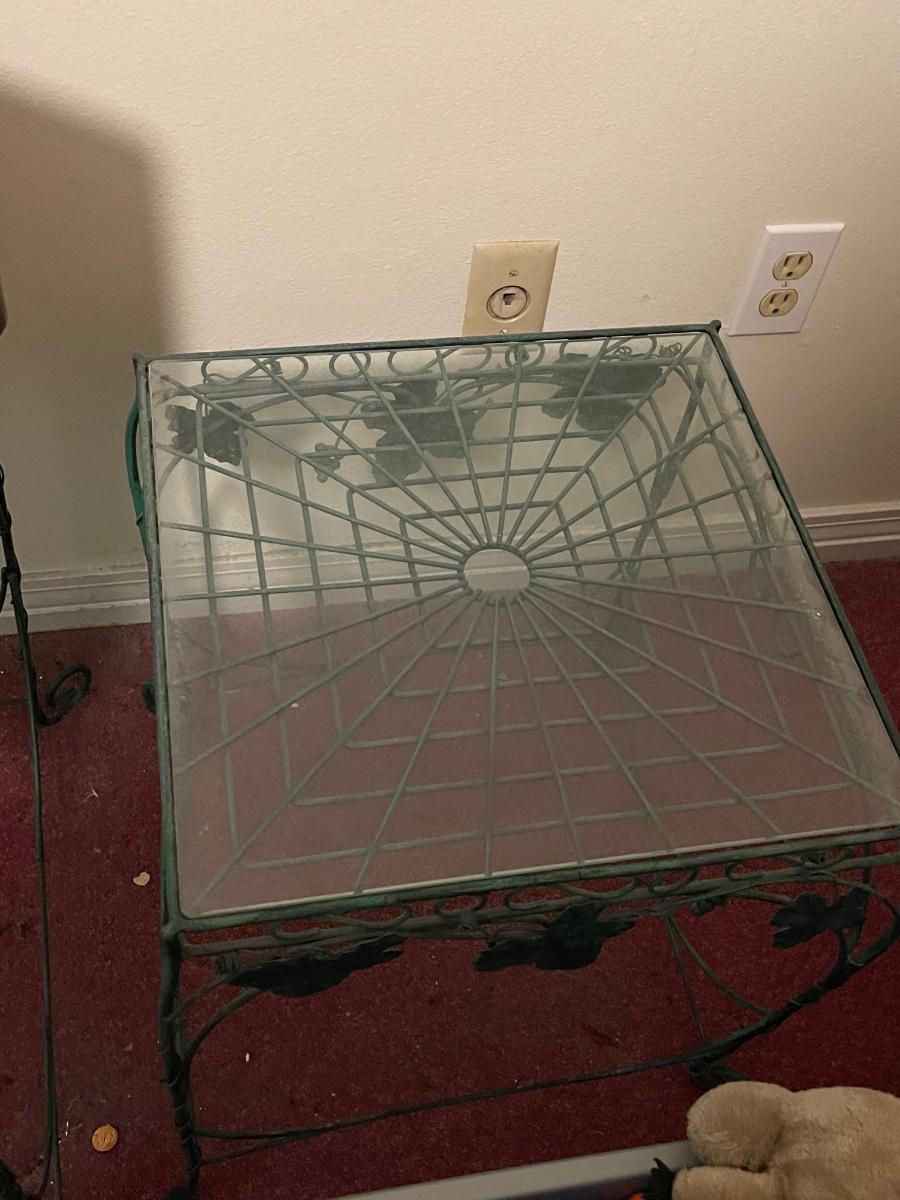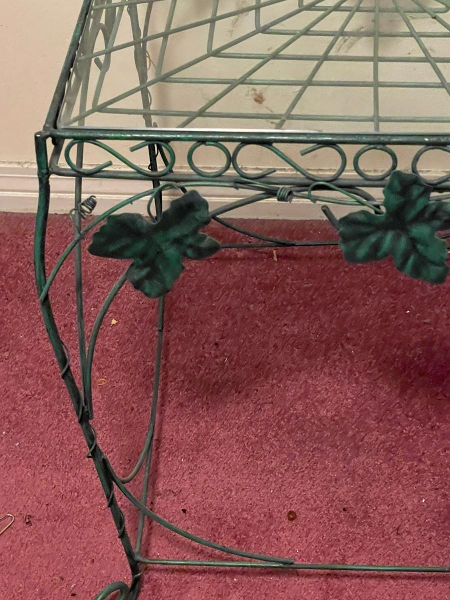 Two Vintage Metal and Glass Leaf Tables