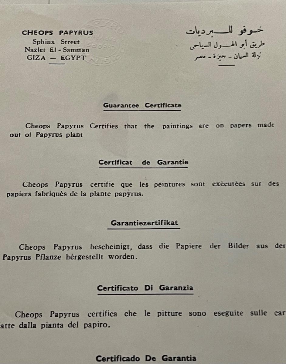 Certified Egyptian Papyrus Artwork