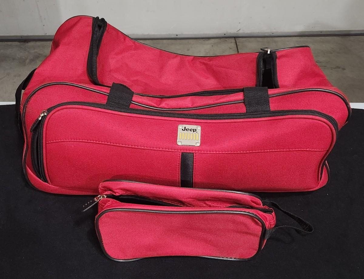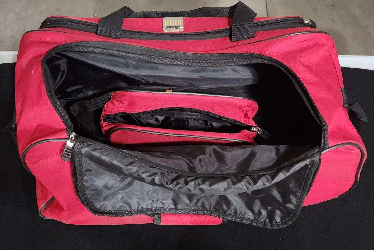 Jeep Red Black Large Duffle Bag Luggage w/ Toiletries Bag Set