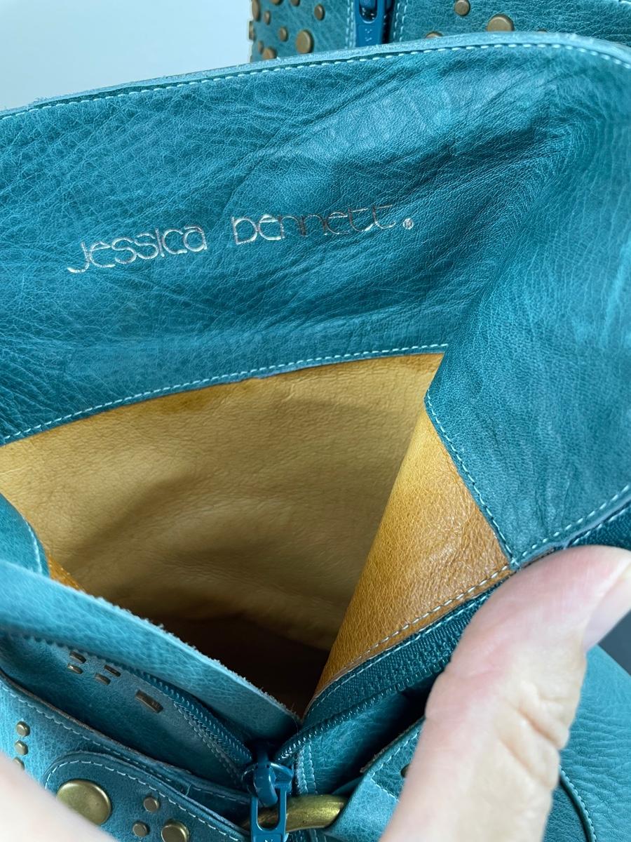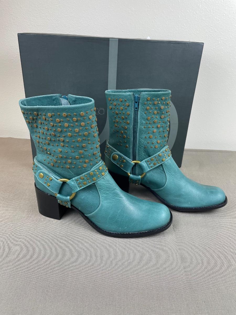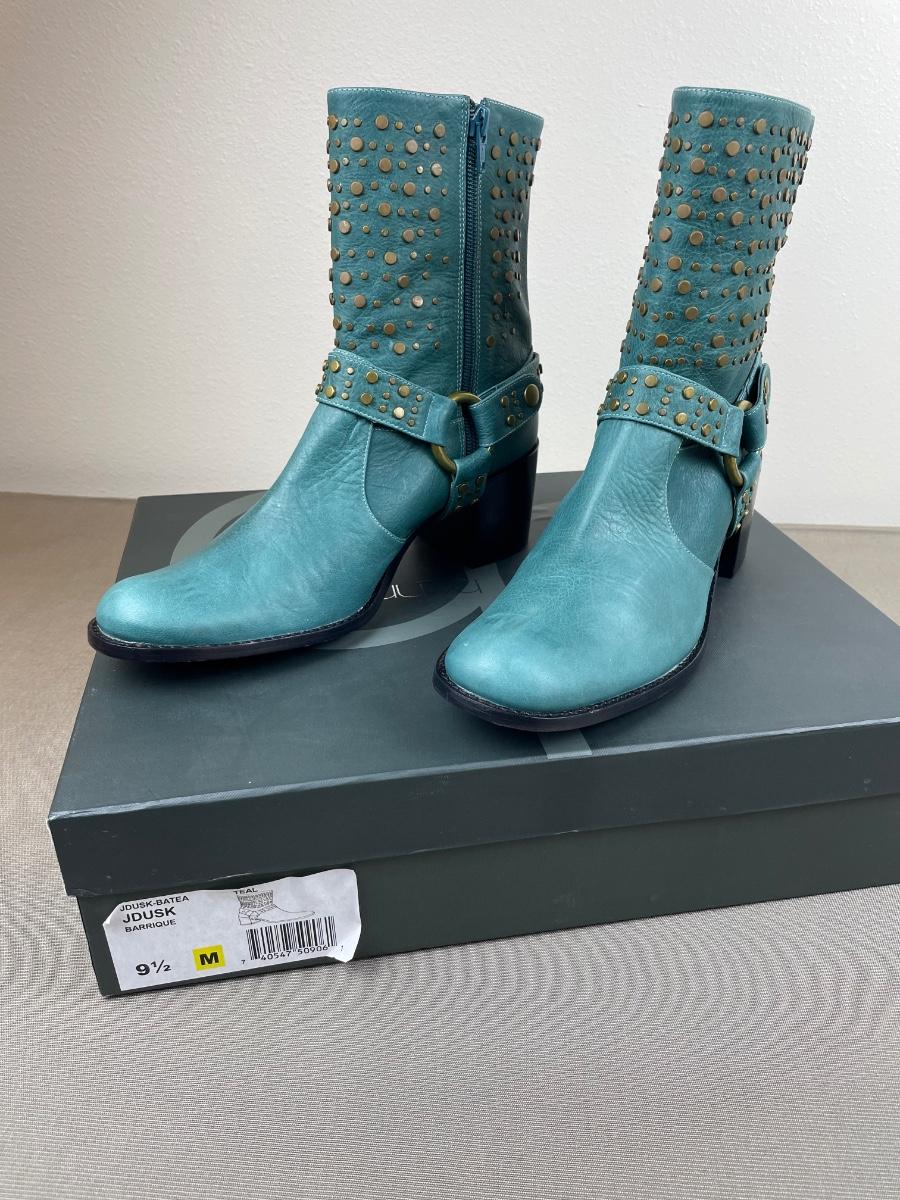 JDusk Barrique style in teal leather. Size 9 1/2. New with box. 2 1/2 inch heel, side zipper.