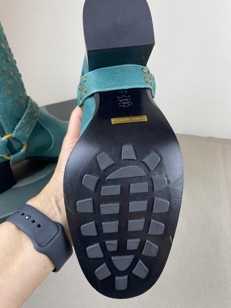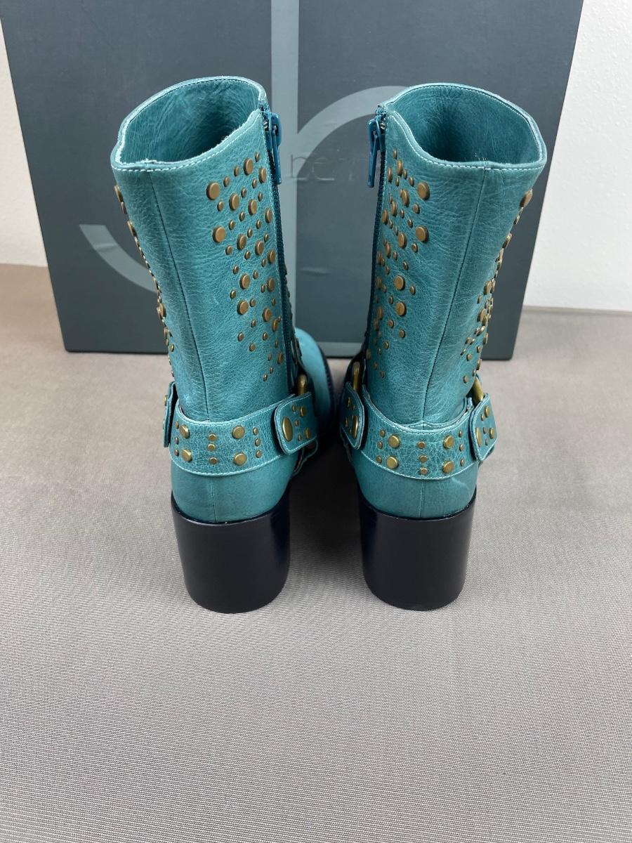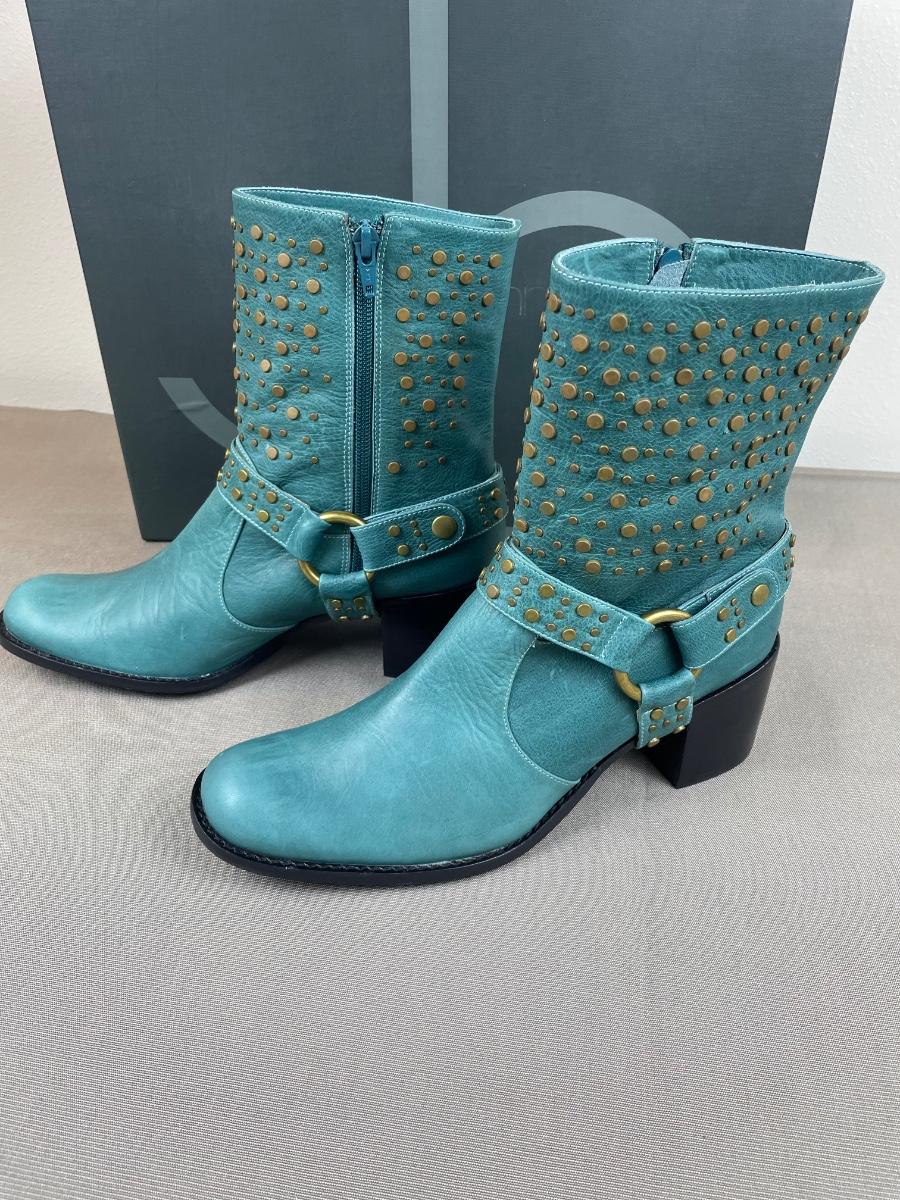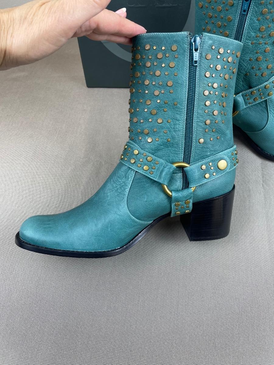 JDusk Barrique style in teal leather. Size 9 1/2. New with box. 2 1/2 inch heel, side zipper.