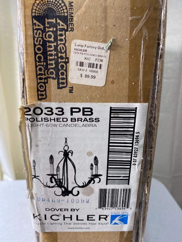Lot # 107 -New Kichler Polished Brass 5 Light Chandelier