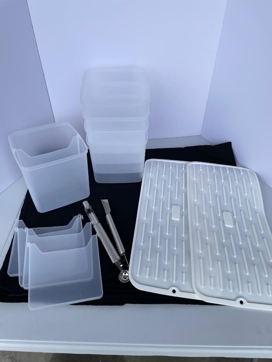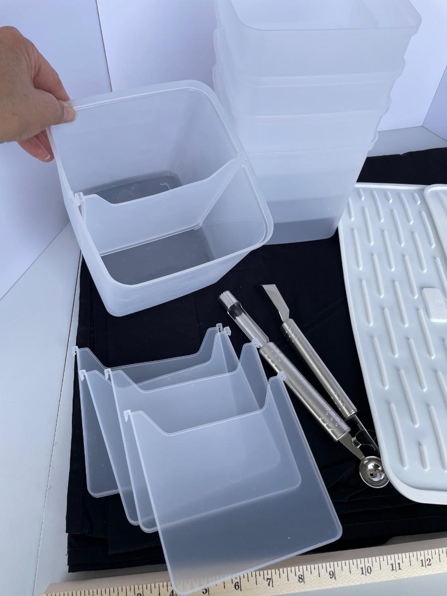 All new, never used. With 5 large divided storage or prep containers (no lids).