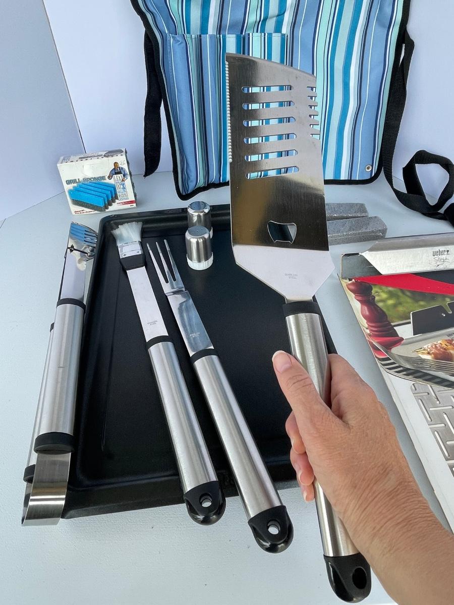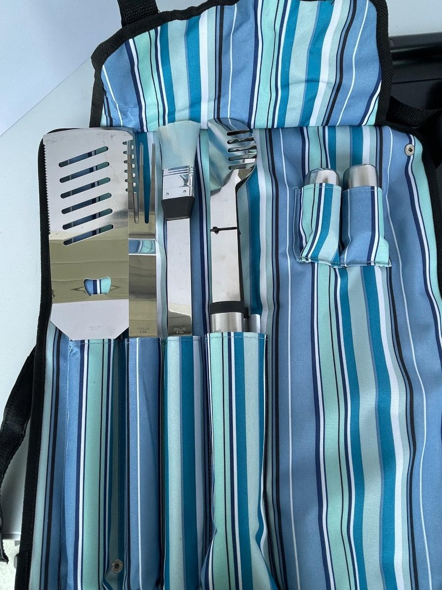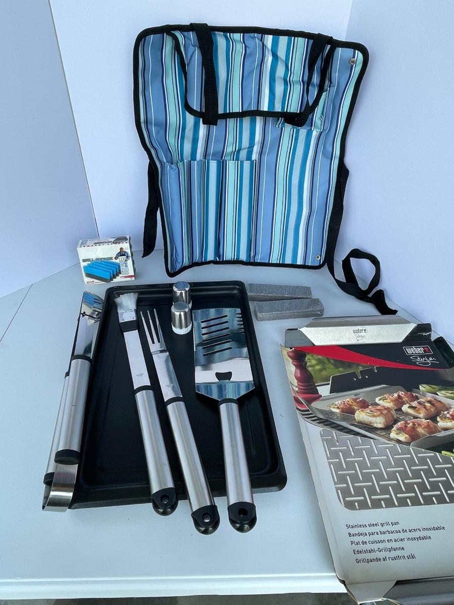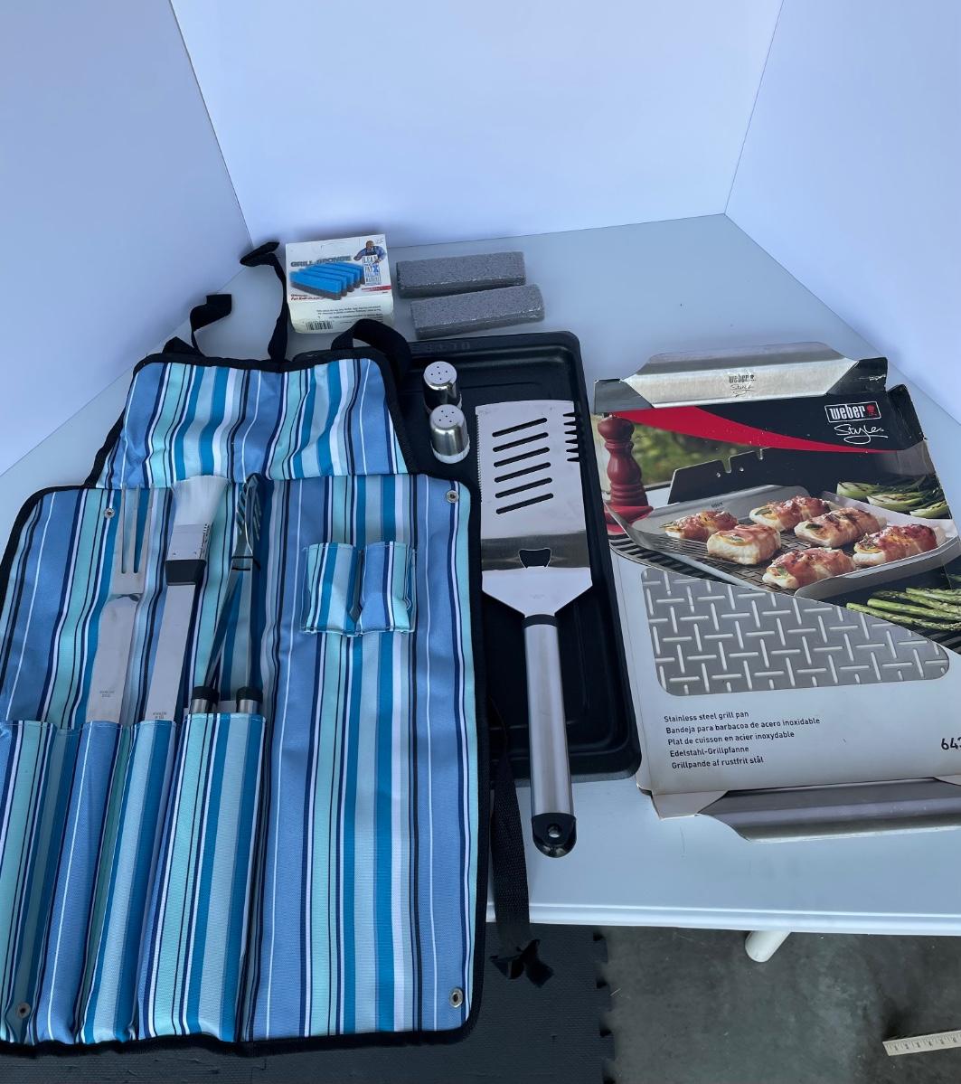 New Large Grill Set with Stainless Tools and Pans