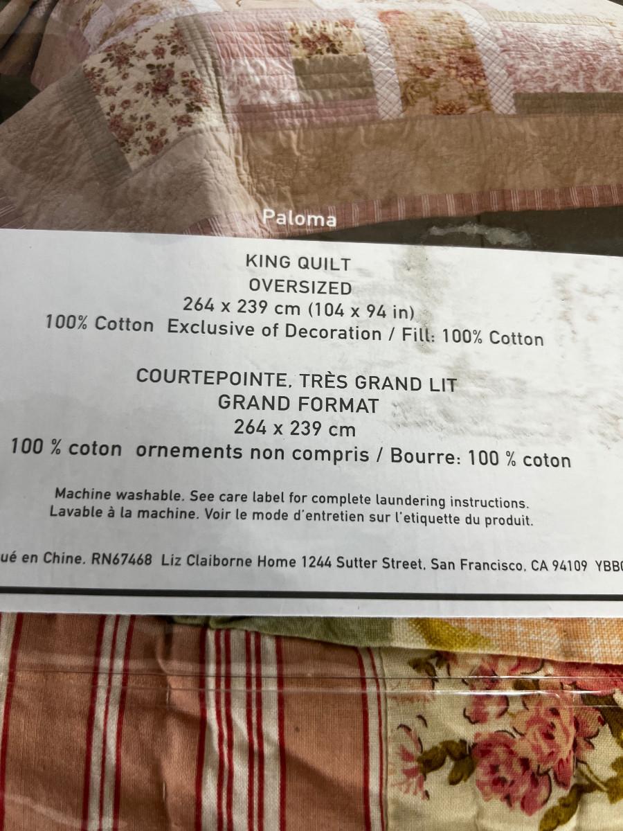 NEW Liz Claiborne Home KING Paloma Pattern QUILT