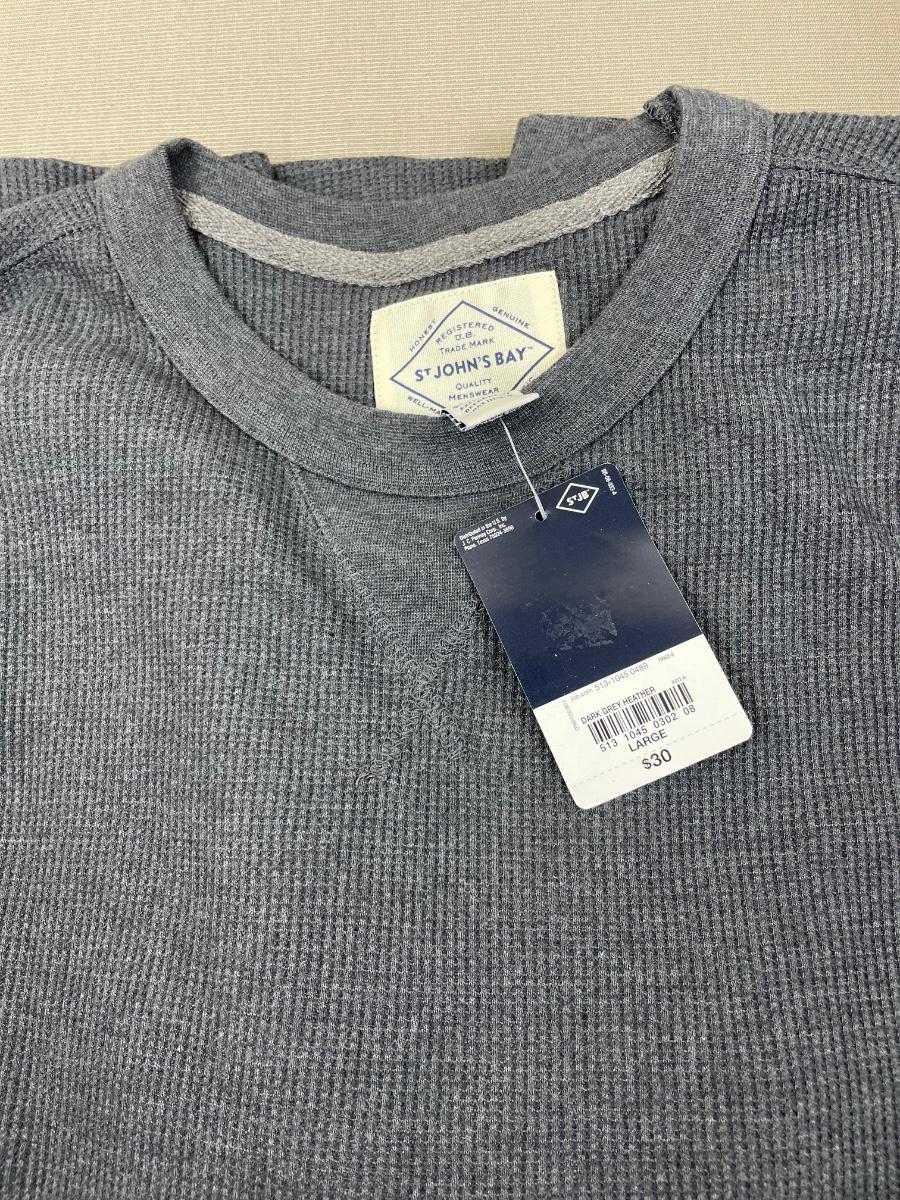 New Men’s Grey Heather Waffle Crew Neck Large